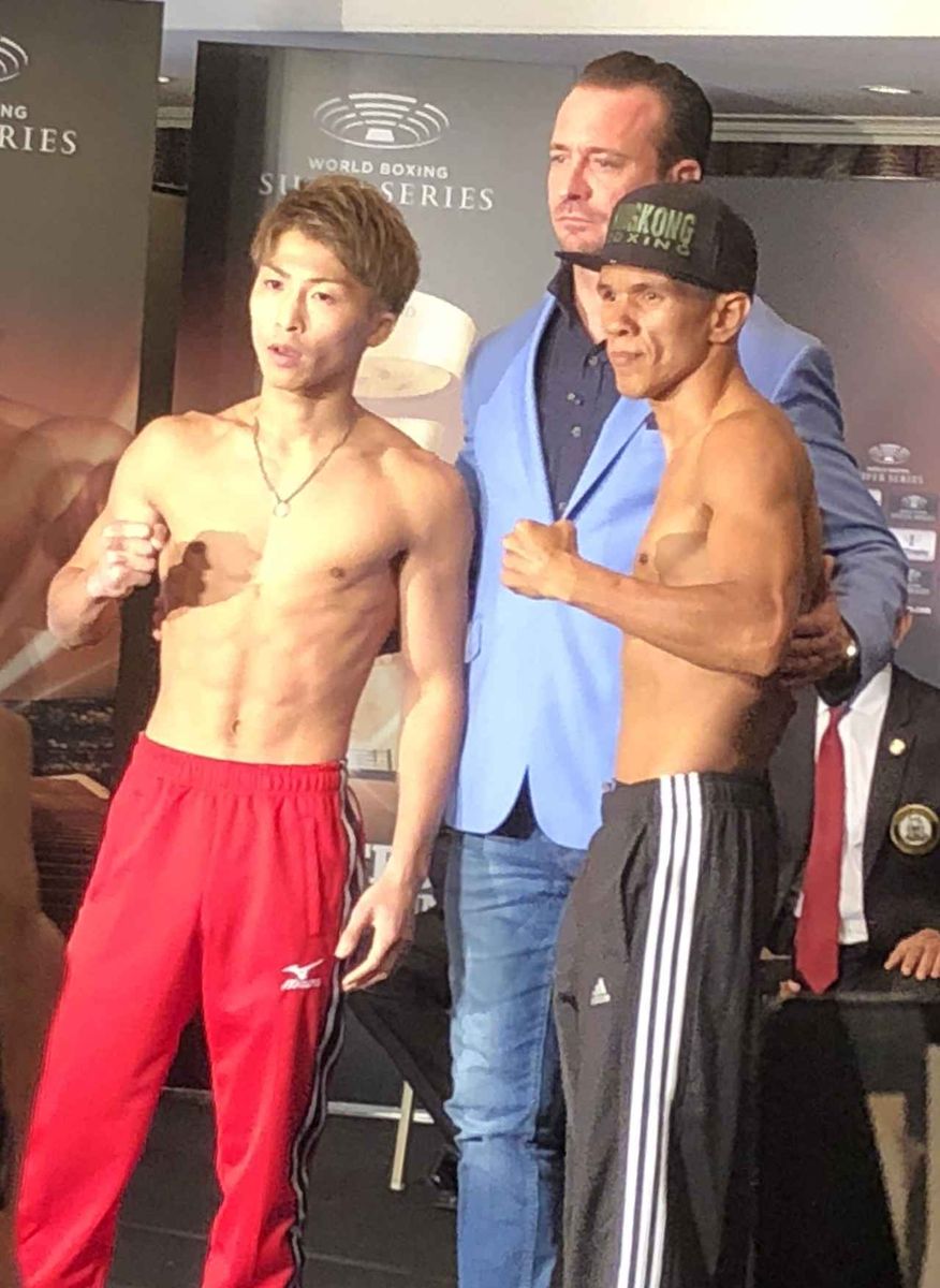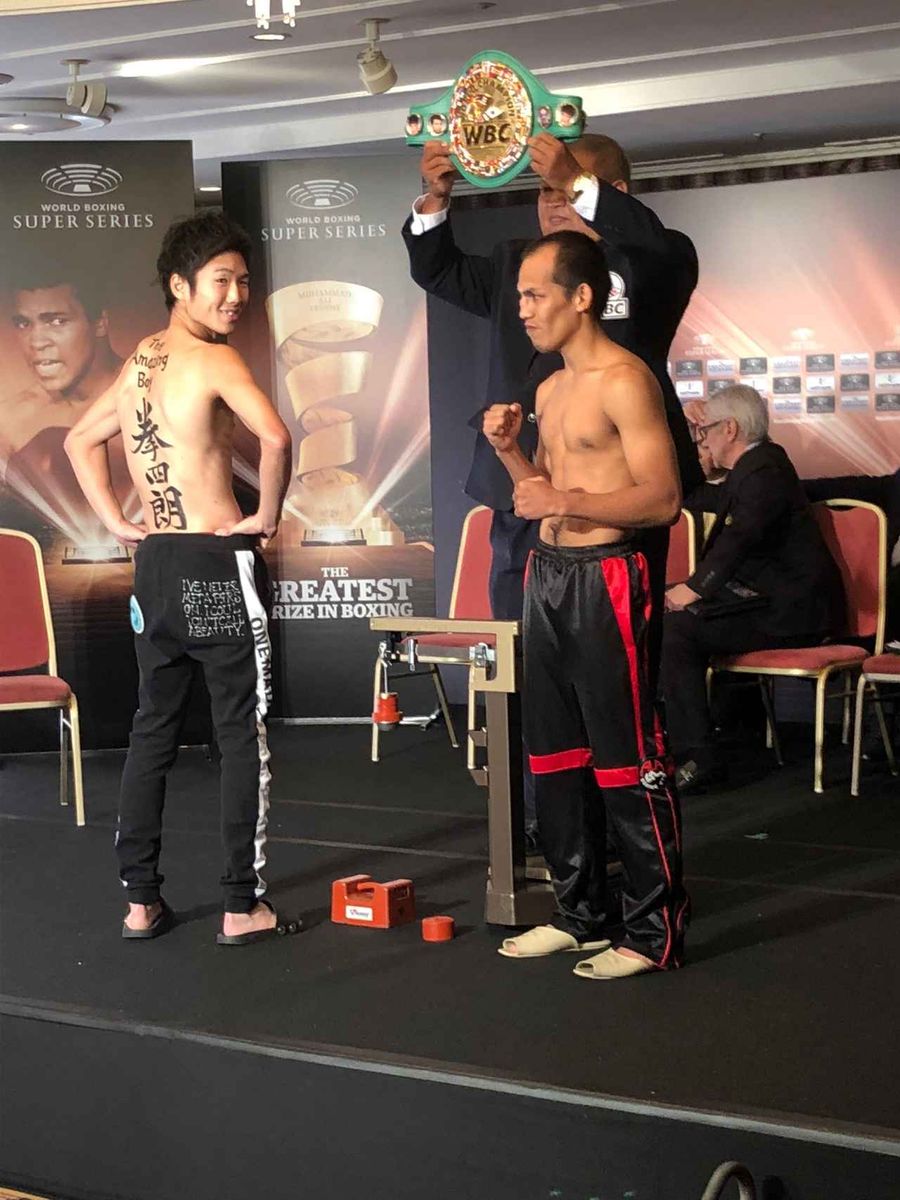 あすに迫ったWBSS(ワールドボクシング・スーパーシリーズ)2カードを含むトリプル世界戦の前日計量が都内で行われ、6人全員がパスした。ライトフライ級挑戦者のミラン・メリンド(フィリピン)は1回目で500gオーバーしたが、再計量で事なきを得た。