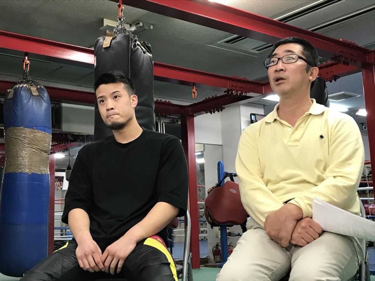 吉井会長と会見に臨んだ寿以輝。結婚し、1児の父となって初の試合でもある
