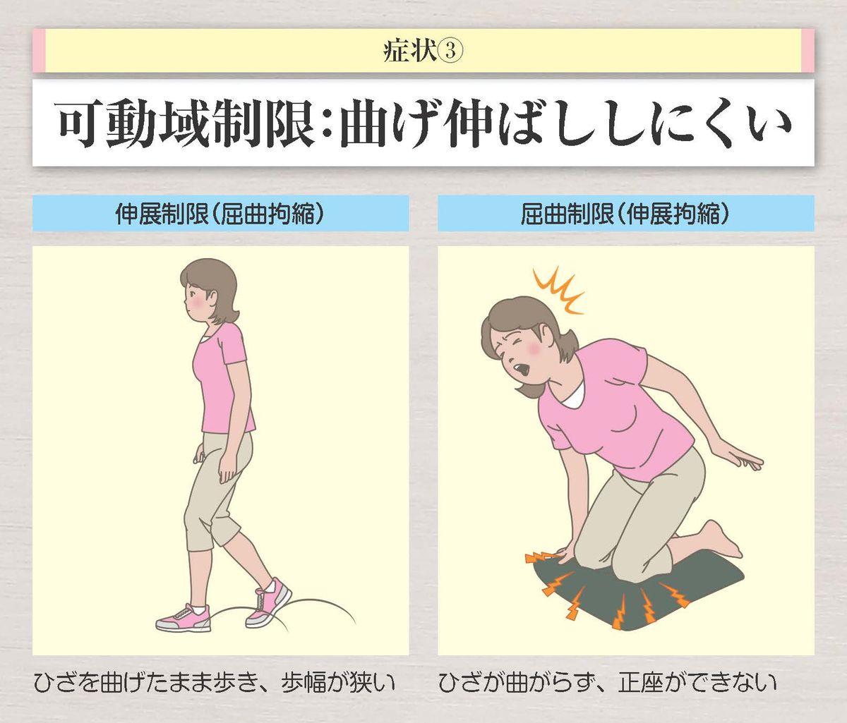 症状③可動域制限(ひざの曲げ伸ばしがしにくい)