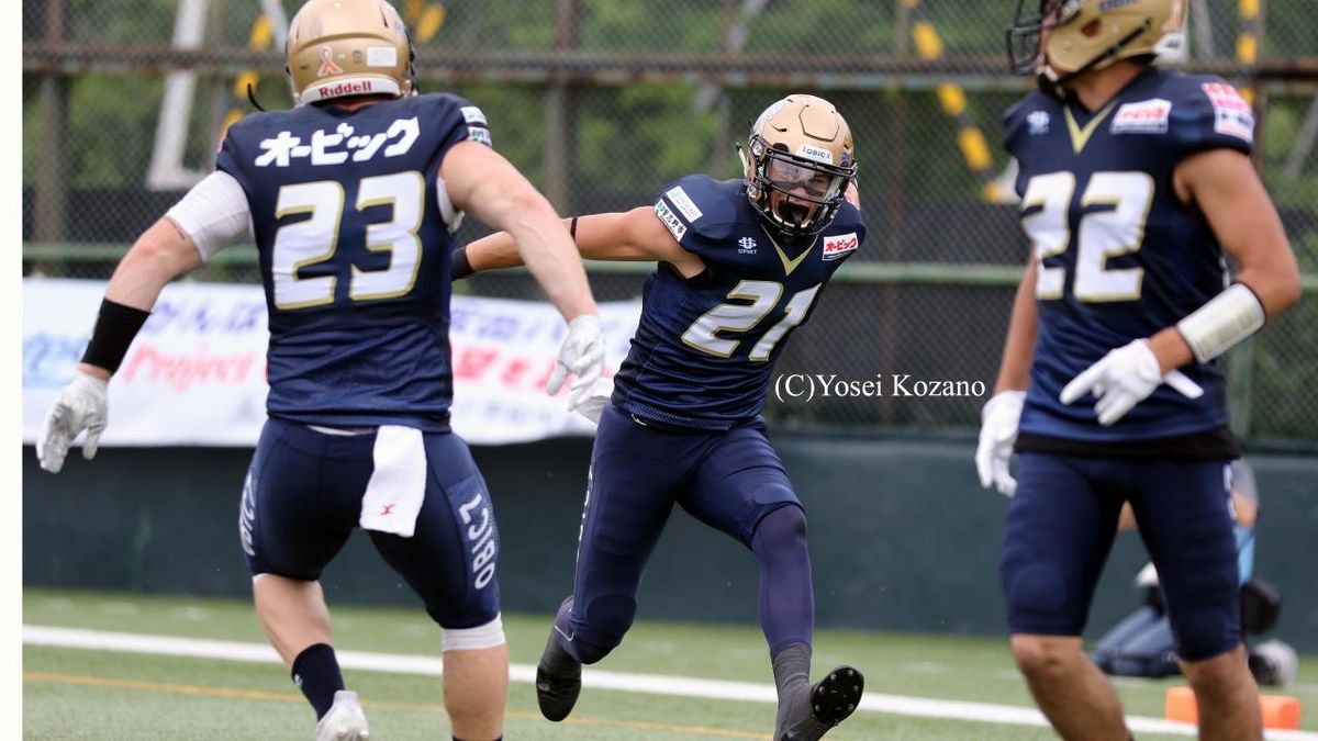 インターセプトしたブロンソンは、兄のバイロン・ビーティー・ジュニアと喜びのセレブレーション。これがディフェンスに「引火」し、「オレもオレも」というシーガルズモードとなった。ファンブルリカバーのケビン・ジャクソンをはじめ、冨田祥太、清家拓也、三井勇洋らディフェンスの猛者が入れ替わりQBサックとタックルフォーロスを決めて、合計9回で53ヤードをロスさせた。