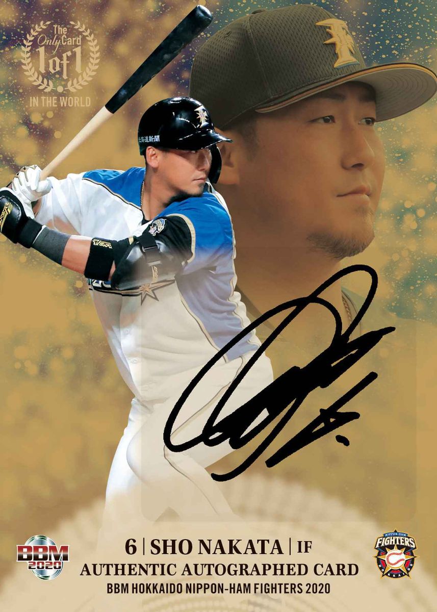 金色に輝き、かつ重厚感のある1of1マークは全チーム共通ですが、少しずつデザインが異なっています。今回のファイターズはとてもきれいで驚きました。特に中田選手がお気に入り。