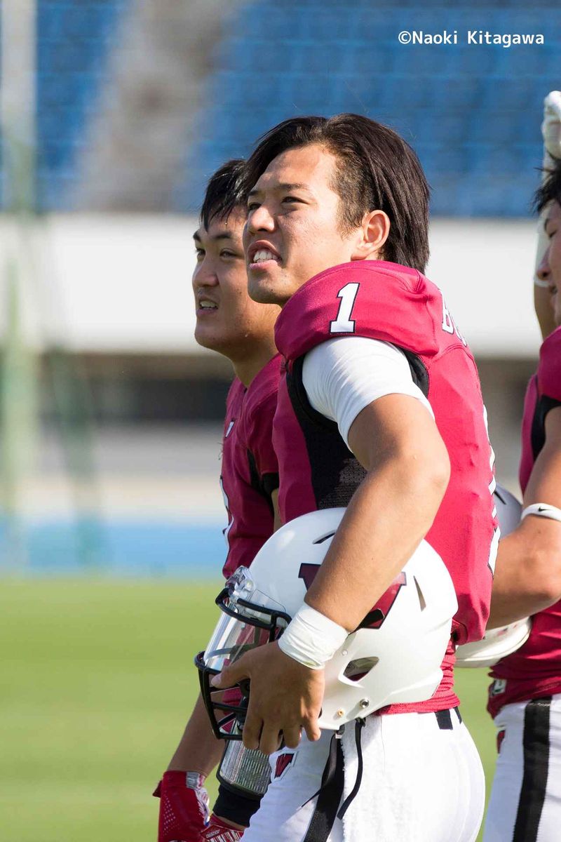 QBは、関東1部TOP8のライバルを見渡しても、昨年甲子園ボウルで優勝し、年間最優秀選手賞のチャックミルズ杯を受賞した日大の林(2年)や、高校時から対戦経験のある法政大の野辺(3年)ら、好選手が揃う。「タイプは違うが、彼らにはチームとしても絶対に負けたくない。」という。