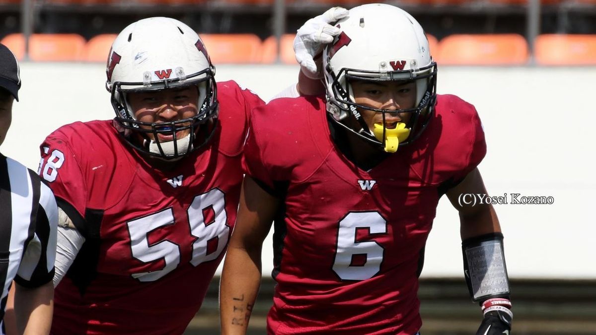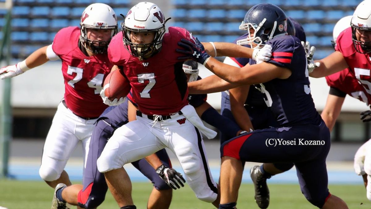 早大がディフェンス陣の活躍で伝統の対抗戦で4連勝(秋季を除く)を飾った。早大は第1クオーターにK長谷川絢也の37ヤードフィールドゴール(FG)で先制、第2クオーターにはRB元山伊織がランでタッチダウン(TD)、長谷川が49ヤードのFGを決めてリードを広げた。追う慶大は前半残り1分を切ったところでQB三輪忠暉がTE鈴木鈴木雷蔵にTDパスを決めて、早大の6点リードで後半へ折り返した。早大は、第3クオーターにQB柴崎哲平からWRブレナン翼に6ヤードのTDパスを決めてリードを広げると、第4クオーターにはDB高橋弘汰のインターセプトリターンTDで、慶大を突き放した。早大はディフェンス陣が5インターセプトを上げる活躍で慶大オフェンスの反撃を封じた。