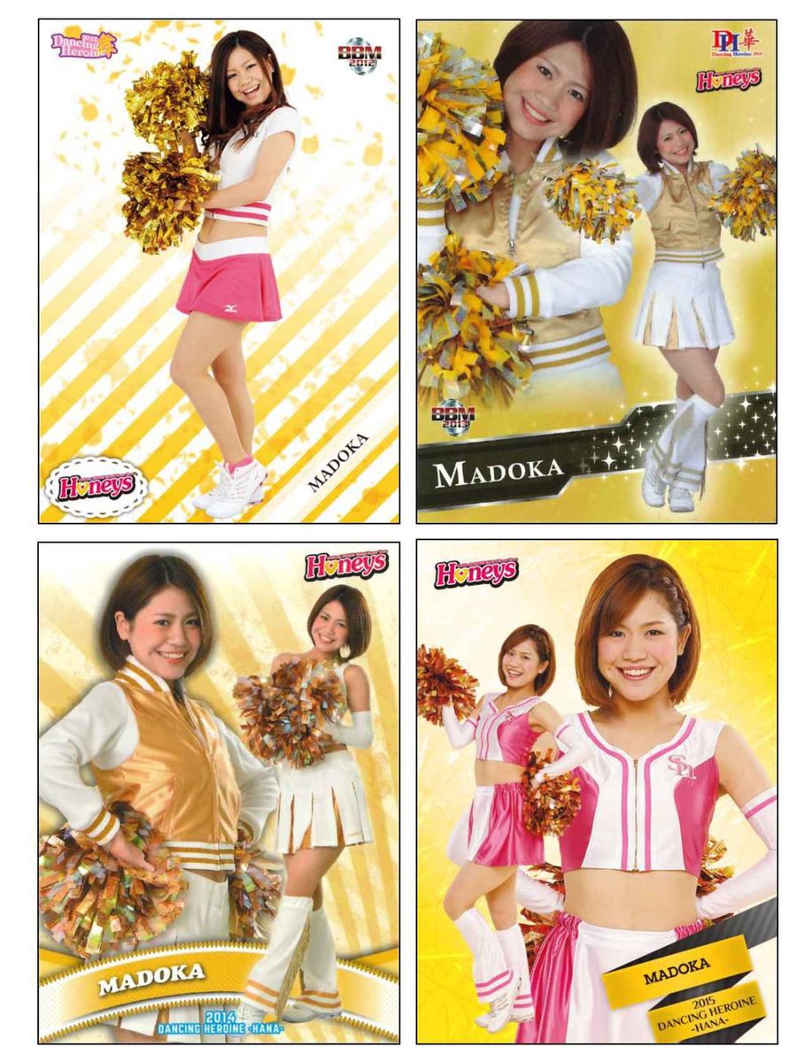 BBM 実は私たちも11年に最初にこのカードを作るにあたり、「チアリーダー」という名称をつけても良いのかどうか悩んだんです。ただ、世間的には「プロ野球のチア」というほうが伝わりやすい。ですからチアだけではないということから副題で「DANCING HEROINE」とつけました。というわけで、MADOKAさんのカードをお持ちしました。1年目の12年は髪、長かったんですね。
