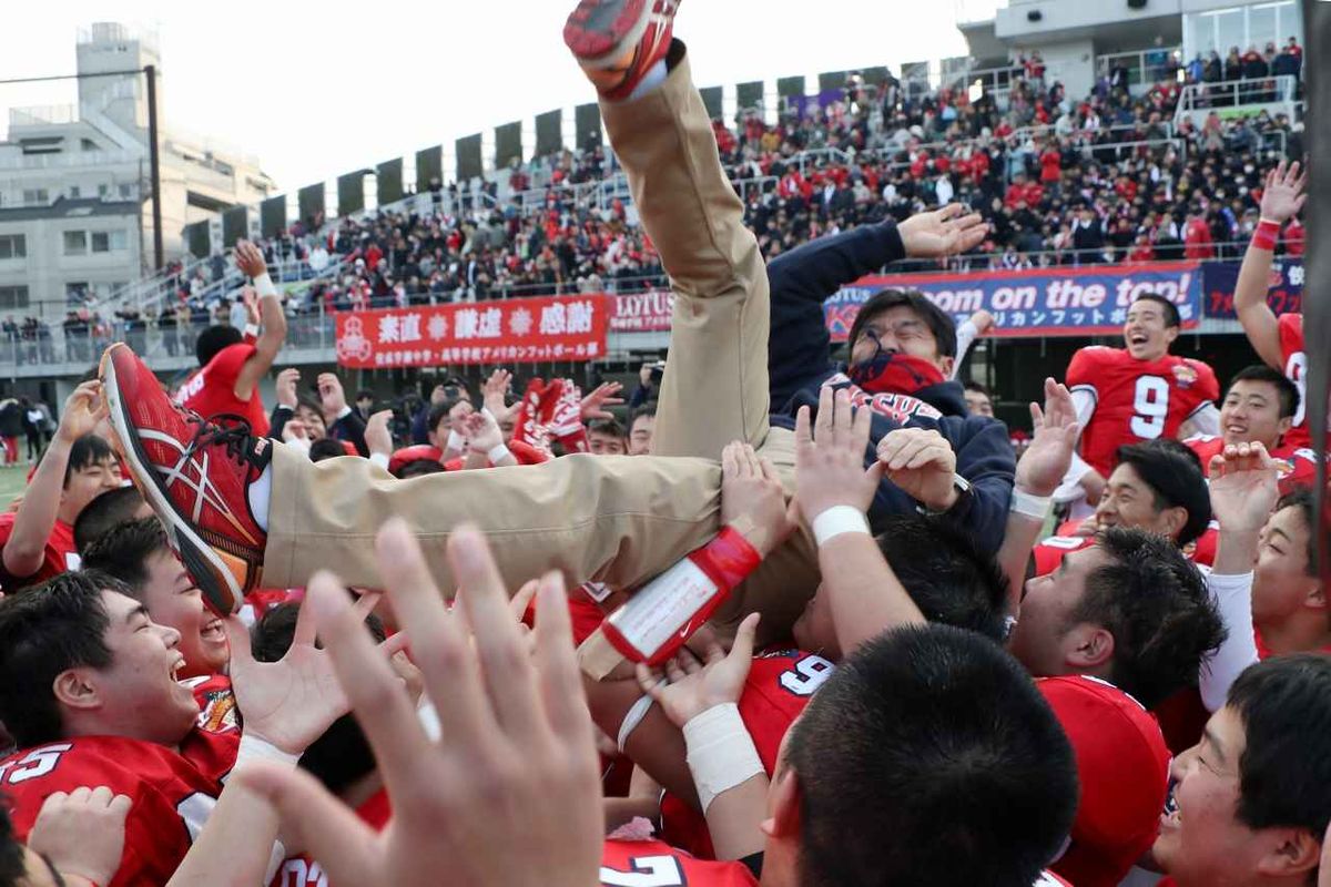 クリスマスボウル【佼成学園vs関大一高】2年連続で高校日本一に輝き、小林監督を胴上げする佼成学園の選手たち