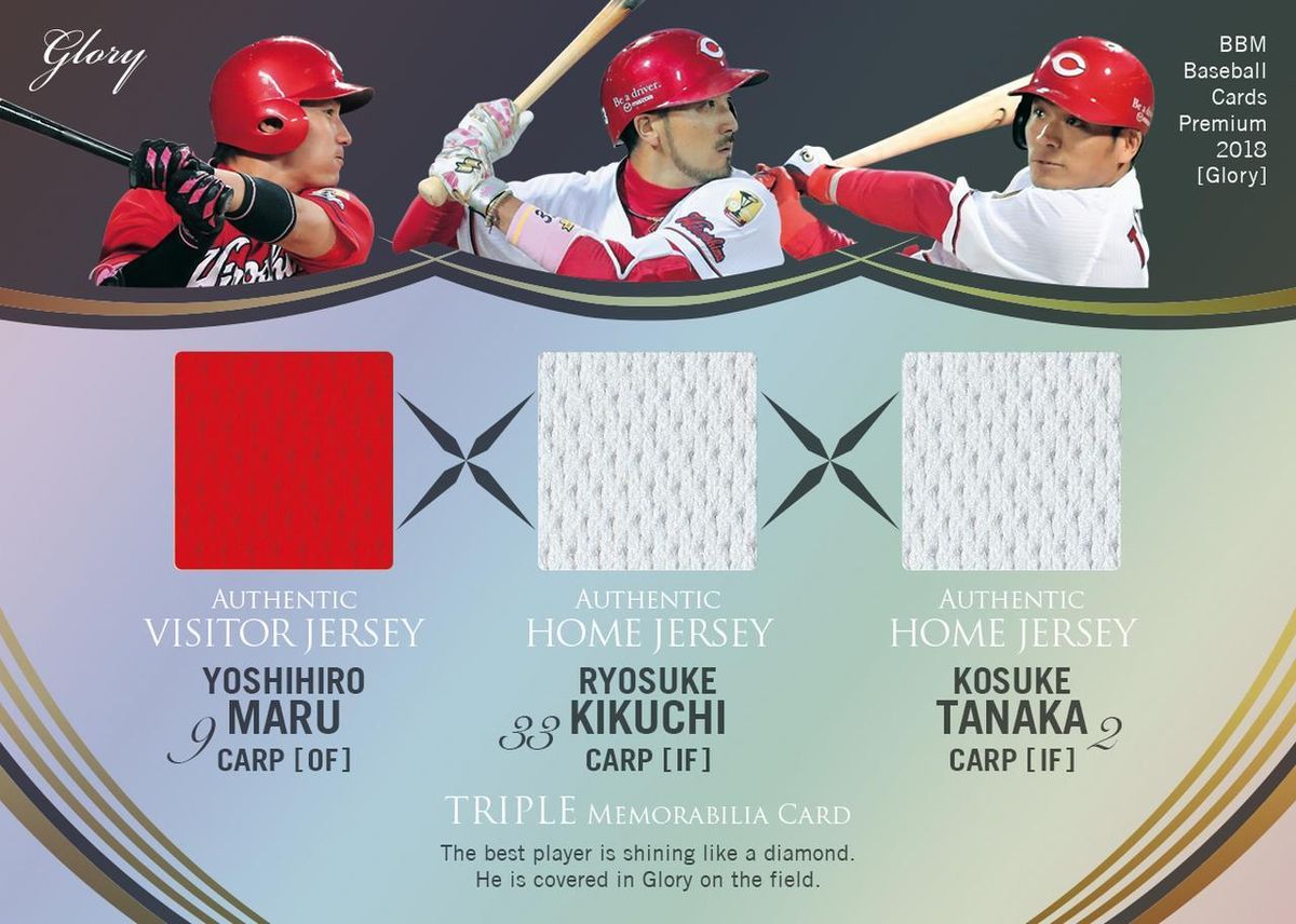 トリプル版は広島限定で、連覇の原動力となった「タナ・キク・マル」トリオのジャージーカードで制作。20枚限定の通常版に加え、10枚限定のパッチ版も制作されています。
