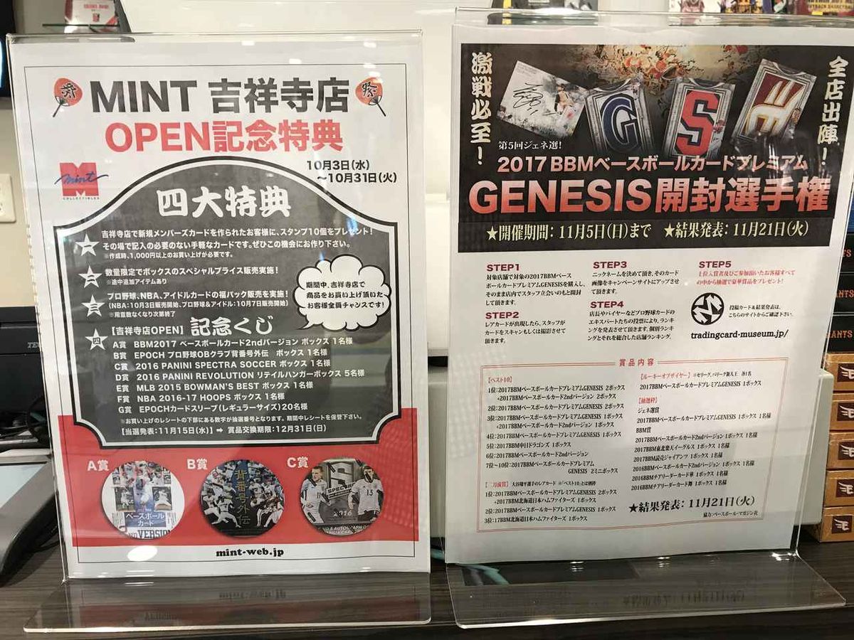 そんなミント吉祥寺店、10月31日までOPEN記念特典がありますので、ぜひ立ち寄ってみてください。そして、BBMのアイテムをお買い上げいただければ、なおうれしいです(笑)。