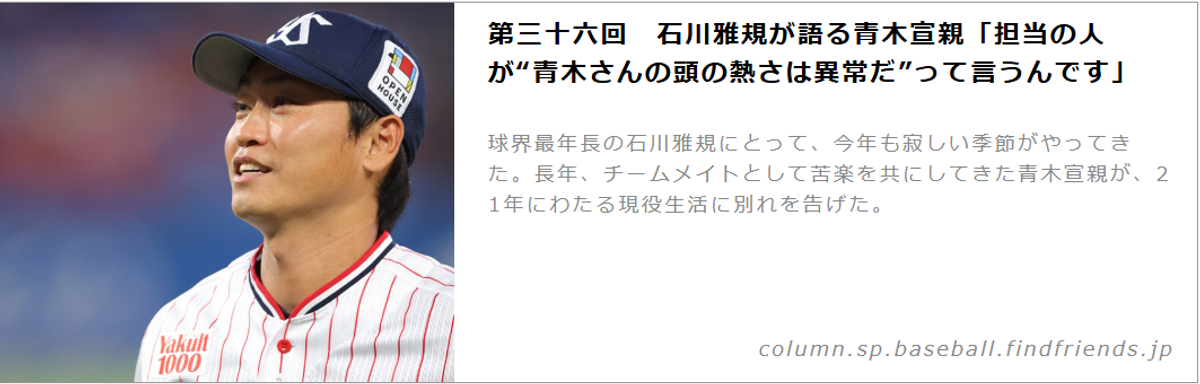 週刊ベースボールONLINEで好評連載中のコラム「2024年の石川雅規〜200勝への飽くなき挑戦」のバックナンバーを、第三十回から一覧にしてご紹介していきます。