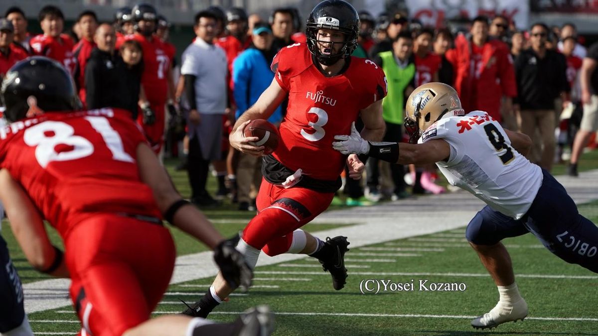 10月29日のレギュラーシーズン最終戦で激しい攻防を見せたライバル同士が、4週間後に再激突したこの試合。富士通が試合冒頭で奪ったタッチダウン(TD)の7点を最後まで守り抜いて競り勝った。富士通は試合開始直後のオフェンスシリーズで、QBコービー・キャメロンが4回連続でパスを決めて相手ゴール前まで攻め込むと、最後は自らキープしてエンドゾーンに持ち込み先制した。その後は、ともにディフェンスが相手の持ち味を殺す展開となった。オービックは第4クオーターに相手陣22ヤードからフォースダウンギャンブルを狙ったが富士通のランディフェンスの前に阻まれファーストダウンを奪えず。その後のオフェンスシリーズでも、2インターセプトを喫するなど、最後までオフェンスがリズムをつかめなかった。