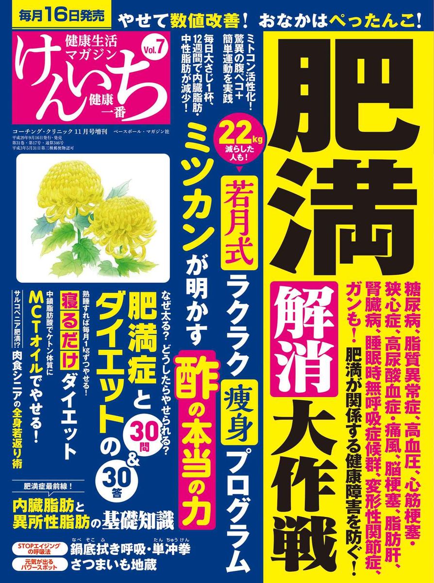 『健康生活マガジン「健康一番」けんいち』Vol.7「肥満解消大作戦」9月16日(土)発売!