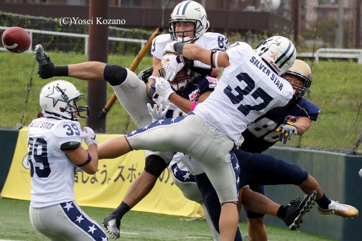 ベースとなったのはランディフェンスだ。シルバースターのQB鈴木以外のランは、RB柳澤拓哉が8回7ヤード、谷田淳が2回8ヤード。「ここをDLがこらえて、きちんと止めていたから。そこからさらに破壊しに行くという、いいスイッチが入った」と考えている。