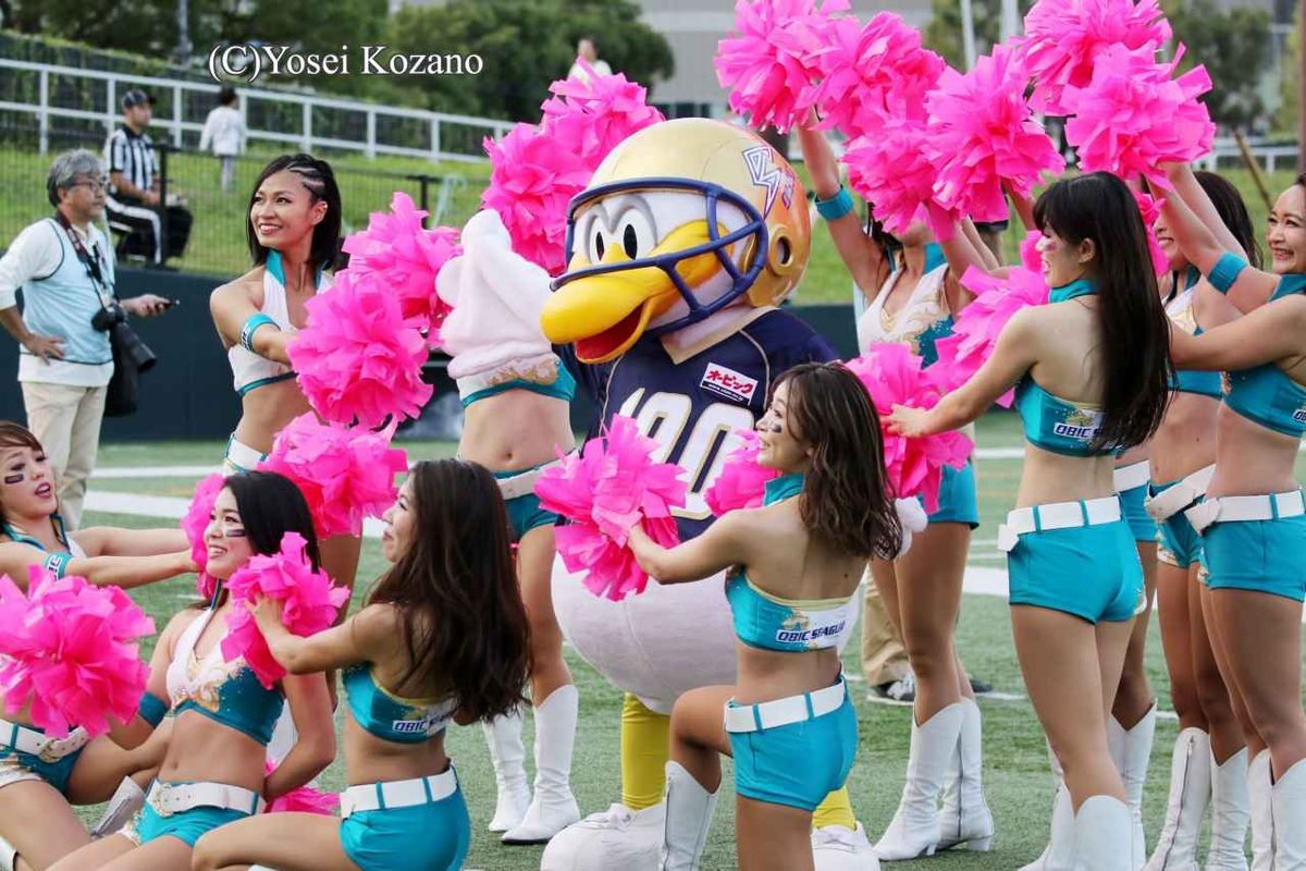 【オービック vs アサヒビール】オービックのマスコット、シーガル君とチアリーダー