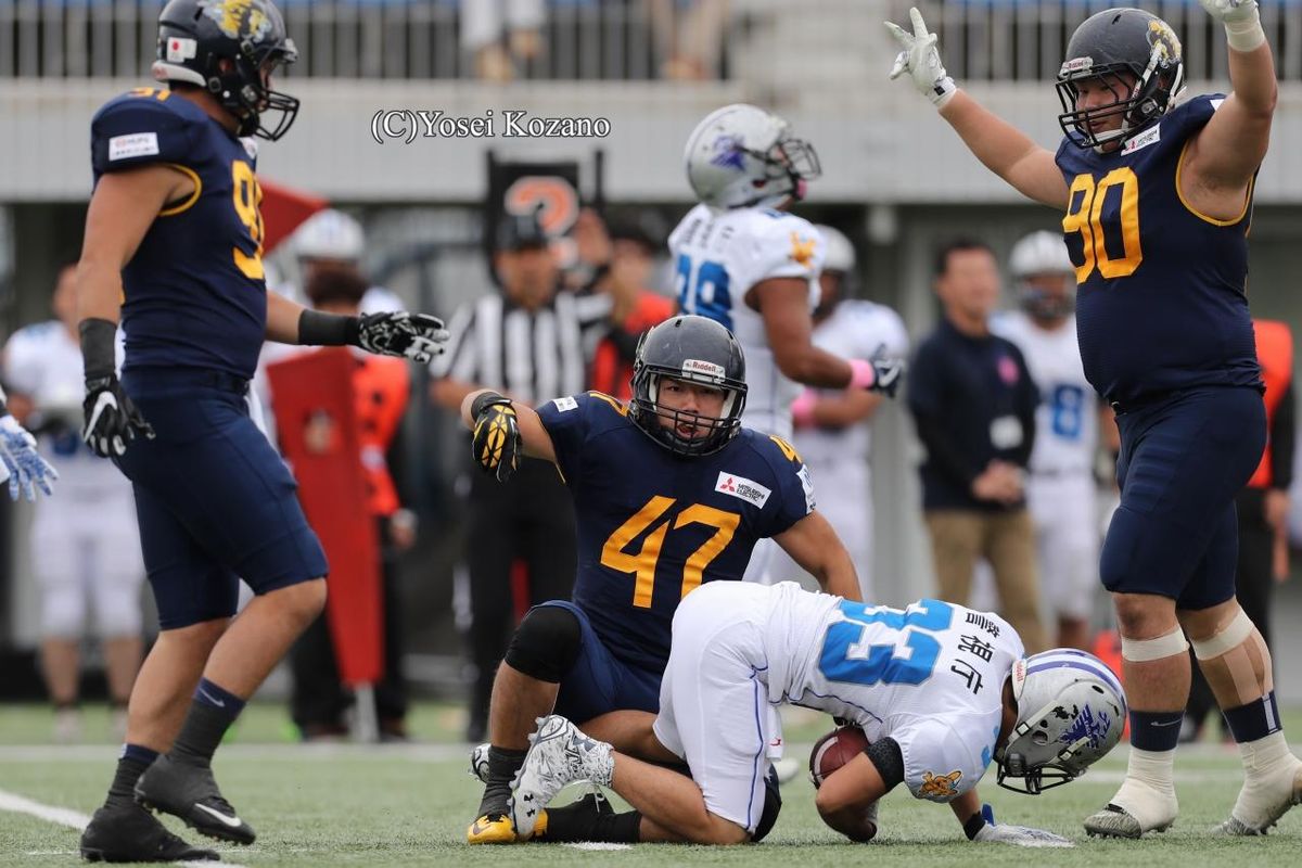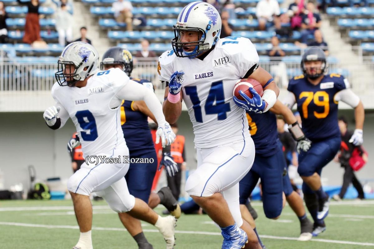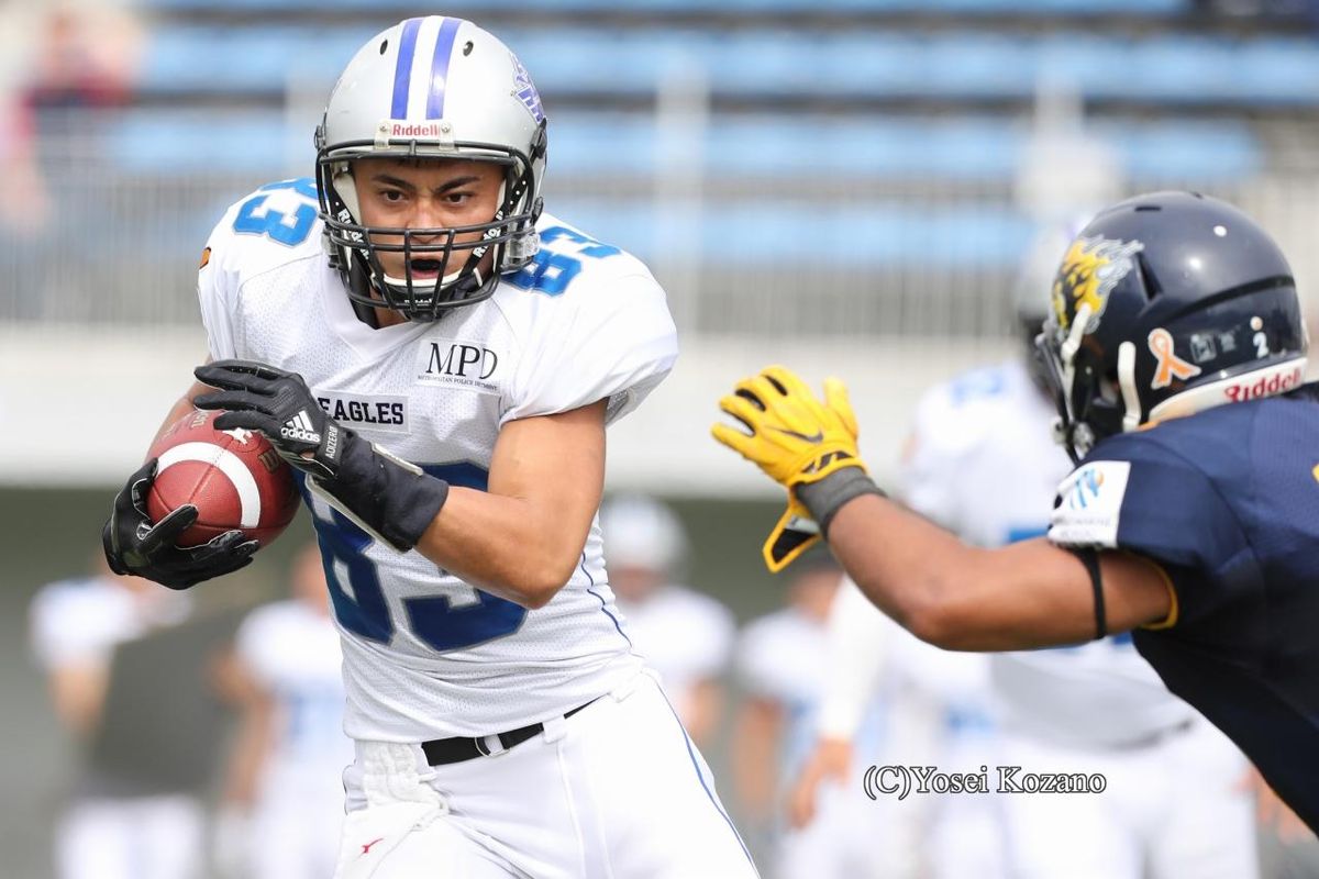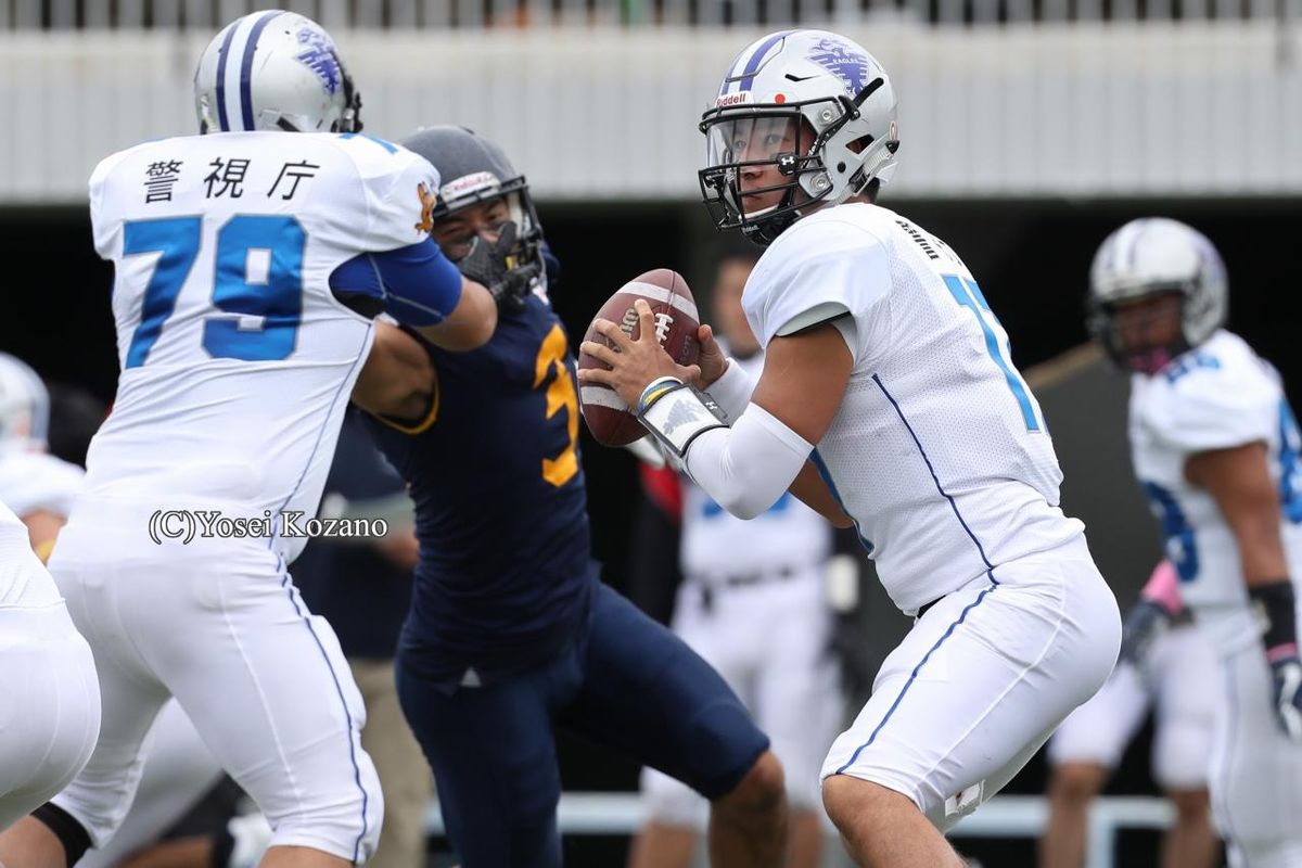 Xリーグは10月7日、富士通スタジアム川崎で、第4節のオール三菱ライオンズ対警視庁イーグルスの一戦が行われ、オール三菱が警視庁に第4クオーターに同点に追いつかれたが、競り勝って3勝1敗とした。敗れた警視庁は1勝3敗。