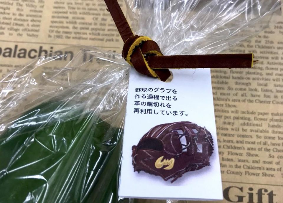 「グラブは牛の皮で、なめすことにより革に変わり、その大切な命をグラブにさせてもらっています。本来は紐でも粗末にしてはいけないと思います。このような形で紐を利用していただけることは、こちらとしても大変ありがたいことです。このご縁に感謝です。牛さん達も喜んでくれると思います」