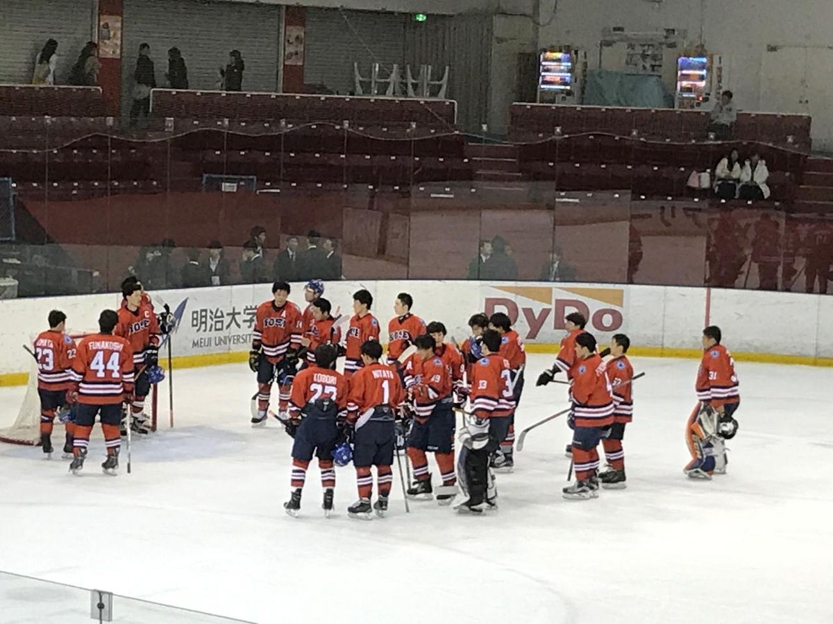 明治もまた開幕戦はてこずった。日大を相手に先制点を献上し、1ピリを1-1で終える、らしからぬスタート。2戦目の慶應義塾戦も2ピリまで点の奪い合いという、予想外の内容だった。1週間前のサマーカップ(苫小牧大学交流戦)決勝では中央に8-1の大勝。敗れた中央の主力DFが「完全に遊ばれました。正直、今は明治の1強です」と表現するほどのすさまじさだった。聞けば、明治はその決勝を終えて以来、東京では1度も氷に乗らないままリーグ開幕を迎えたのこと。特に狙いがあったわけではなく、単純に氷上練習の枠が取れなかったのが理由だが、明治の選手いわく「氷上は取れませんでしたが、疲れはばっちり取れました」。今週末からの2試合では、持ち前の流れるような波状攻撃が見られるだろう。