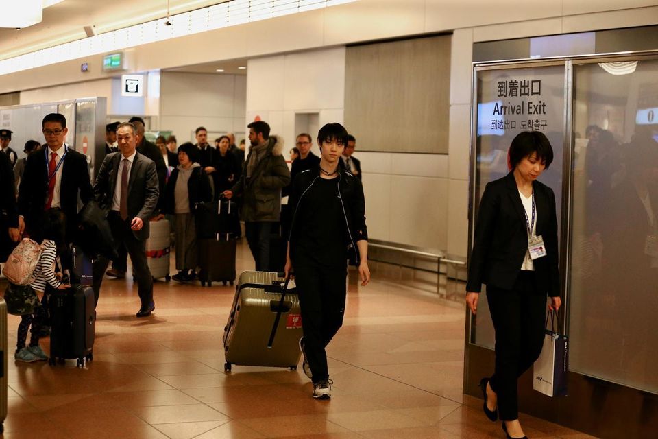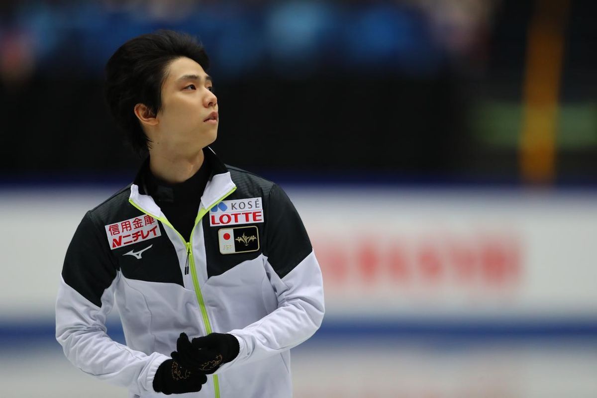 ※写真上=練習で真剣な表情をみせる羽生結弦