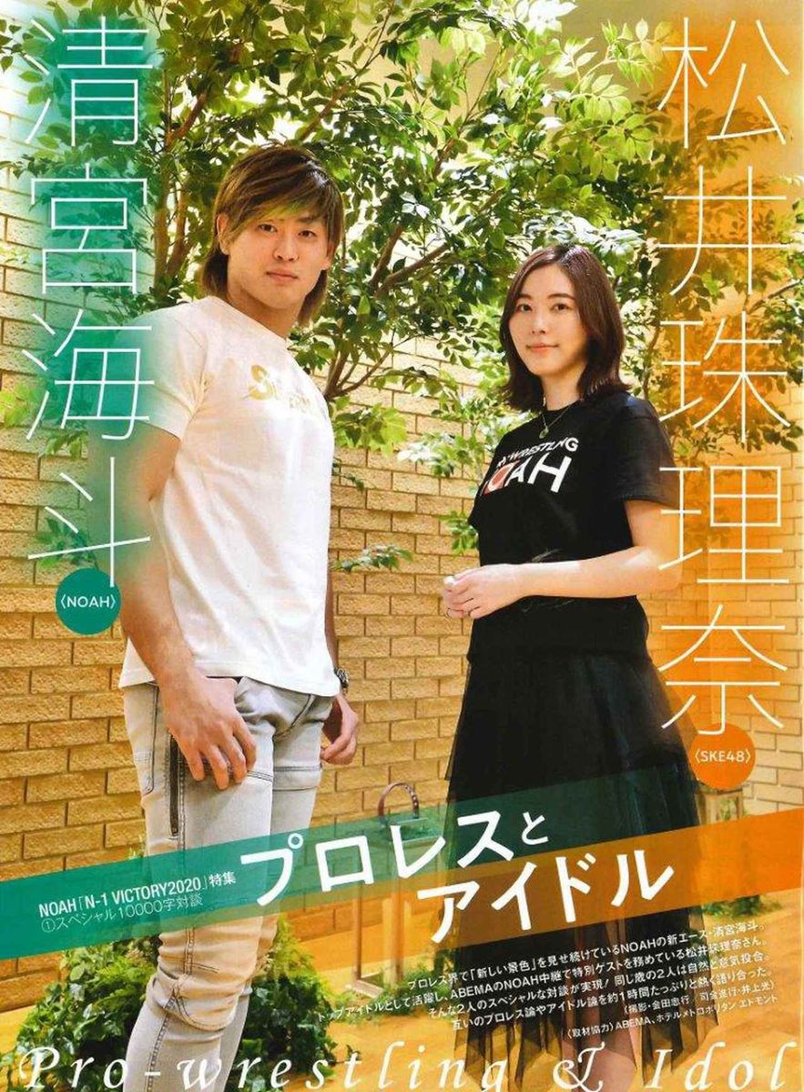 プロレス界で「新しい景色」を見せ続けているNOAHの新エース・清宮海斗。トップアイドルとして活躍し、ABEMAのNOAH中継で特別ゲストを務めている松井珠理奈さん。そんな2人のスペシャルな対談が実現! 同じ歳の2人は自然と意気投合。互いのプロレス論やアイドル論を約1時間たっぷりと熱く語り合った。(井上)