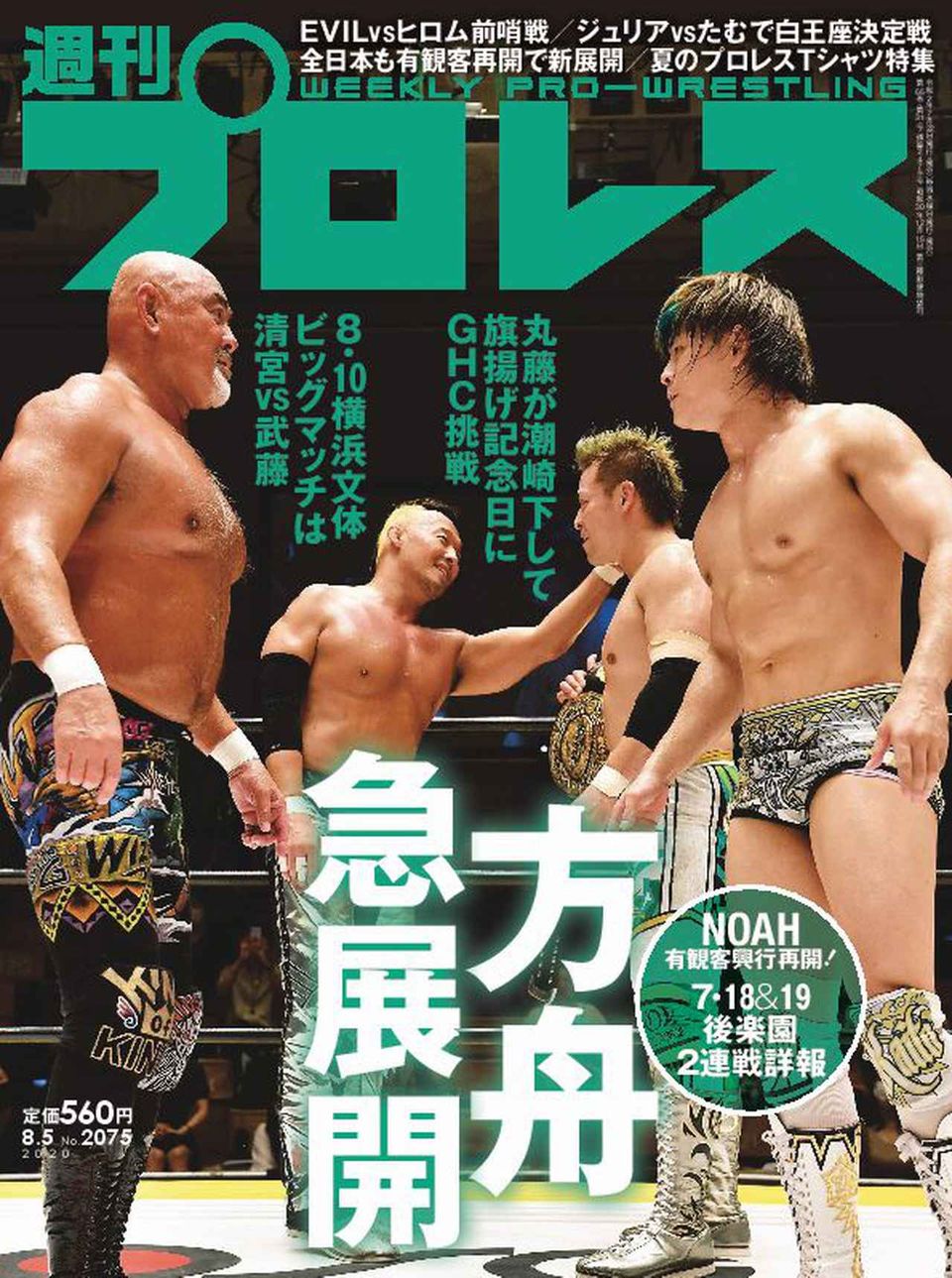 週プロ早版 8・5号(№2075)NOAH有観客興行再開!7・18&7・19後楽園2連戦詳報/EVILvsヒロム前哨戦/ジュリアvsたむで白王座決定戦/全日本も有観客再開で新展開/夏のプロレスTシャツ特集 7月22日(水)発売 定価560円