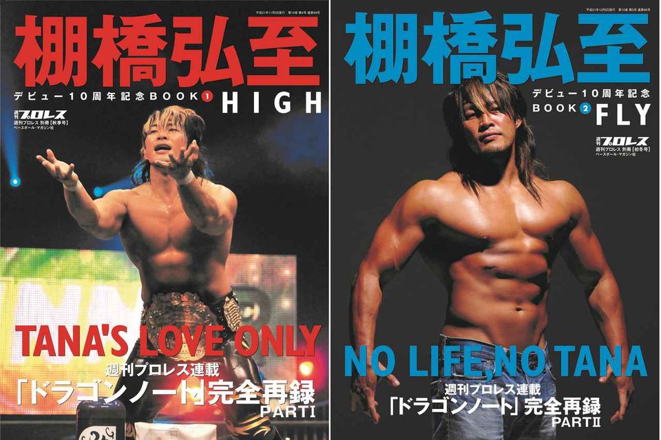 2009年発行の“タナ本”には、デビューから10年の若き日の棚橋弘至の貴重な写真と、当時、本人が執筆したコラム、今や400回を突破した連載「ドラゴンノート」の黎明期を再録しています。