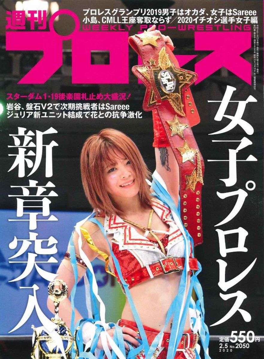 今週号の掲載内容は…スターダム1・19後楽園札止め大盛況!岩谷、盤石V2で次期挑戦者はSareee、ジュリア新ユニット結成で花との抗争激化/プロレスグランプリ2019男子はオカダ、女子はSareee/小島、CMLL王座奪取ならず/2020年イチオシ選手女子編、ほか。