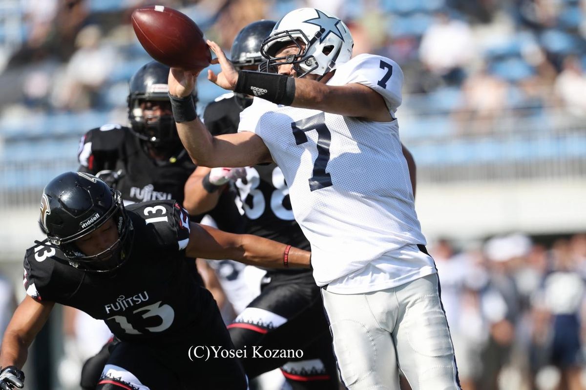 Xリーグは9月10日、富士通スタジアム川崎で、第2節の富士通フロンティアーズ対アサヒビールシルバースターの1戦が行われ、富士通が45-23でアサヒビールに逆転勝ちし開幕から2連勝とした。