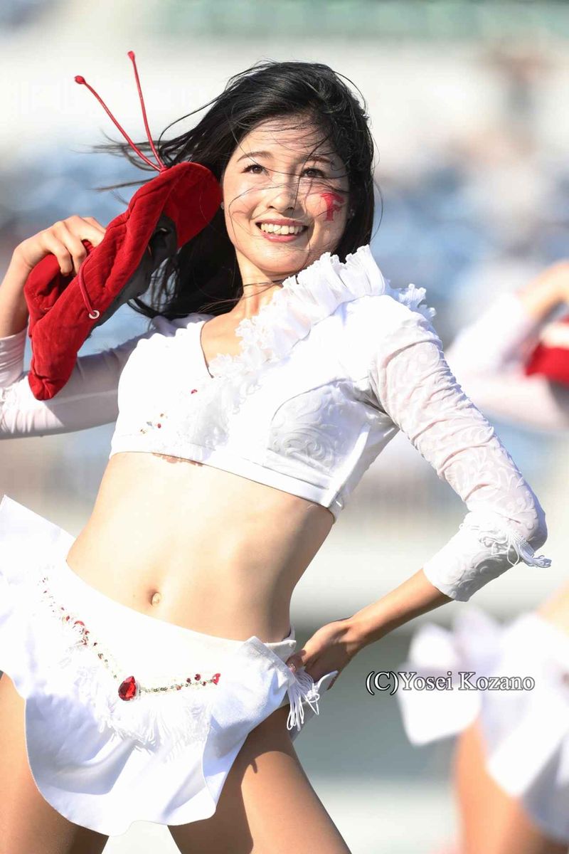 【富士通 vs アサヒビール】笑顔で演技するアサヒビール・シルバースターのチアリーダー