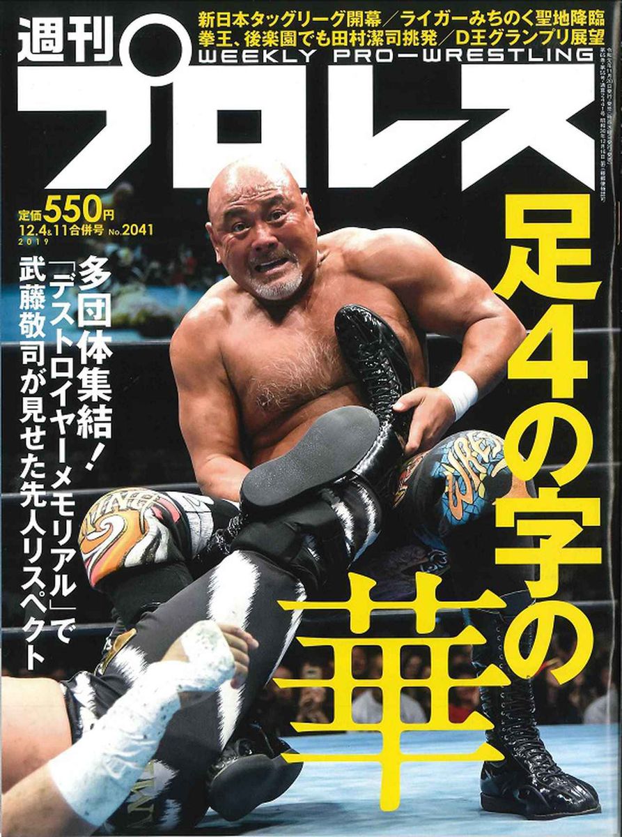 週プロ早版 12・4&11合併号(№2041)デストロイヤーメモリアル11・15大田区で武藤敬司が見せた先人リスペクト/新日本タッグリーグ開幕/ライガーみちのく聖地降臨/拳王、後楽園でも田村潔司挑発/D王GP展望 11月20日(水)発売 定価550円