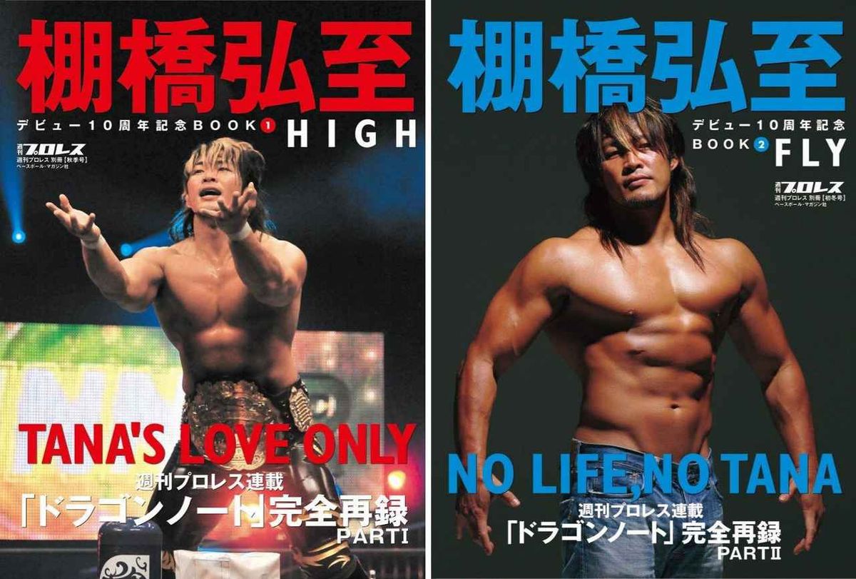 棚橋弘至のデビュー20周年を記念して、2009年にベースボール・マガジン社より発行された10周年記念BOOK、①HIGH、②FLYの2冊をオンデマンド【ペーパーバック】版とデジタル版で復刻!! 価格は各巻1500円+税。