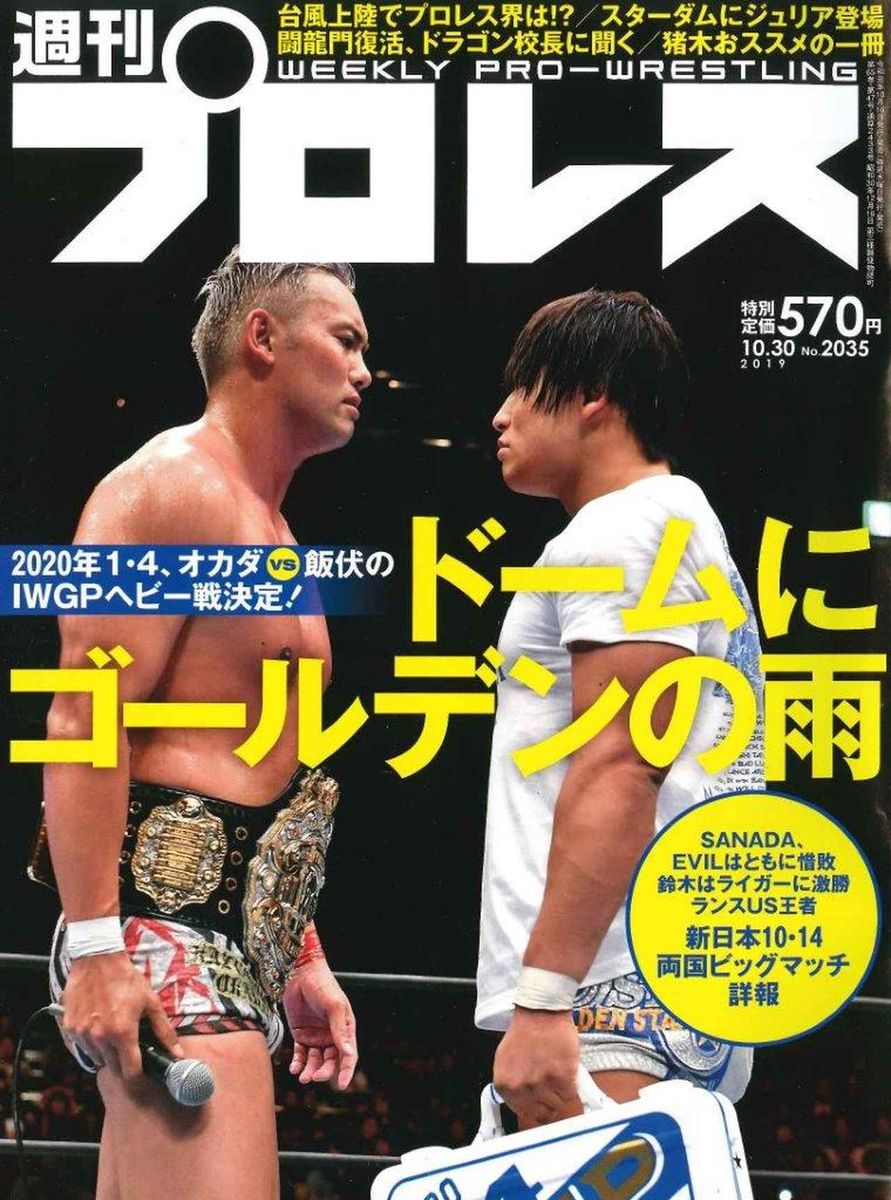 週プロ早版 10・30号(№2035)2020年1・4、オカダvs飯伏のIWGPヘビー戦決定!新日本10・14両国詳報/台風上陸でプロレス界は!?/スターダムにジュリア登場/闘龍門復活、ドラゴン校長に聞く/猪木おススメの一冊 10月16日(水)発売 特別定価570円