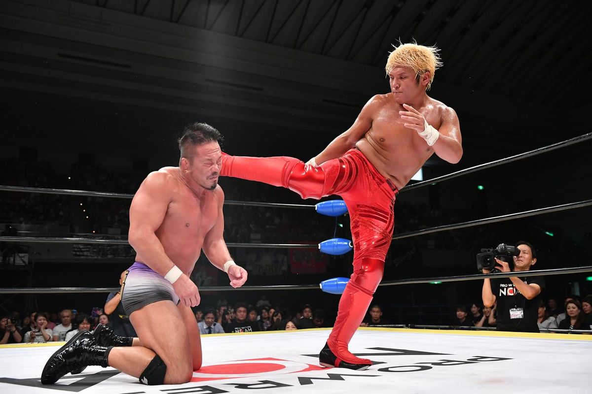 拳王 そこは重要だよ。オレは本当に三沢さんに会ったことがない。そんな選手がGHCヘビー級王者に今までなったことがなかったから、タイトルマッチに向けてわかりやすいテーマとして発信したんだよ。三沢さんのことは当然尊敬してるし、NOAHにとって大切な人だとずっと思ってる。リスペクトの裏返しでそういう発言をしたわけであって、あんなにもすごい三沢さんを知ってるけど、今、中途半端なNOAHのレスラーに対して投げかけたんだよ。