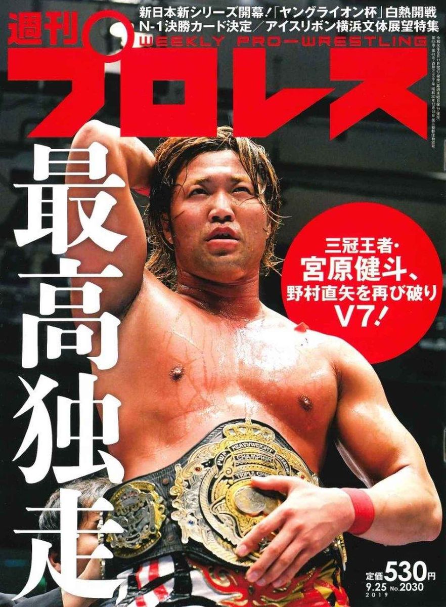 今週号の表紙は全日本・後楽園大会で三冠ヘビー級王座V7に成功した宮原健斗です。3月に続いて2度目となる野村直矢との三冠戦は前回を上回る熱戦の末、宮原が堂々勝利。セミでは世界タッグで圧倒的強さを誇る“暴走大巨人”諏訪魔&石川修司がゼウス&崔領二組に敗れ王座陥落。意外な結末に聖地もどよめき、大熱狂となった王道後楽園大会は巻頭カラーから詳報。