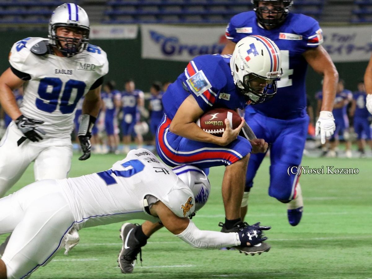 Xリーグは9月4日、東京ドームで、第1節の東京ガスクリエイターズ対警視庁イーグルスの1戦が行われ、東京ガスが、ラン316ヤードと「地上戦」で警視庁を圧倒し、32-6で今季の初戦を飾った。
