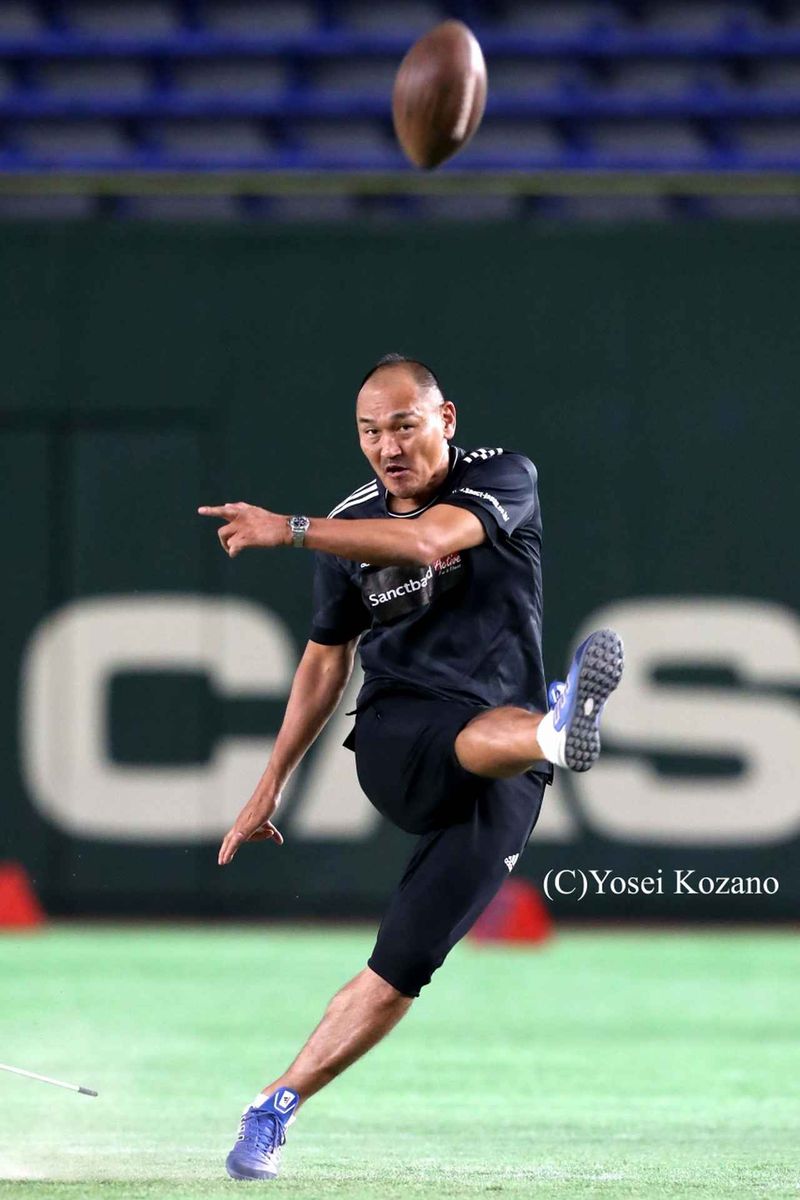 【東京ガス vs 警視庁】ハーフタイムに登場し、フィールドゴールチャレンジを成功させたサッカー元日本代表のDF秋田豊さん