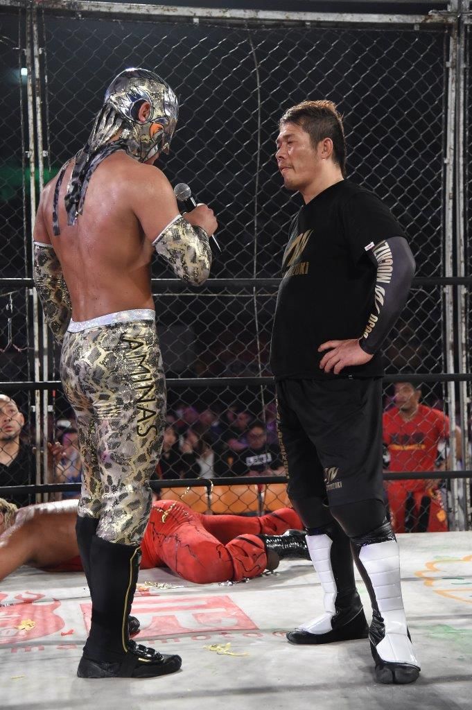オレとな、オマエが組んでたらな、ツインゲートの価値、そしてこのオレ、ビッグR清水の価値も下がるんじゃ、コラッ。それとよ、Ben-K、もう一個言わせてもらおうぞ。オマエよ、オレがEitaのこと、追放するわけないやろ。オレとEitaは裏で繋がってたんじゃ。R・E・Dのな、リーダーはEitaしかおらんねん! なあEita」