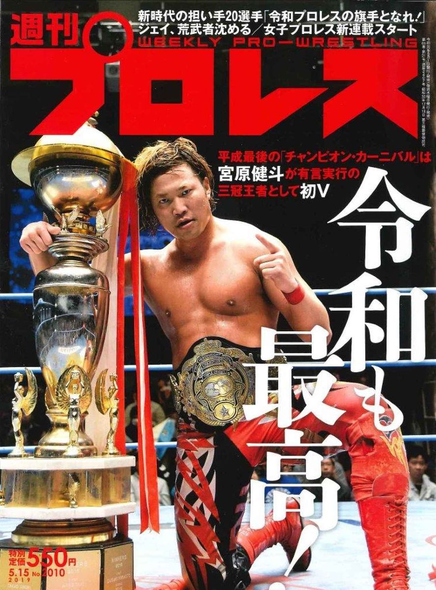 今週号の表紙は全日本「チャンピオン・カーニバル」を三冠王者として初優勝した宮原健斗です。毎年恒例の春の祭典は今年も熱戦続き。最終週は後楽園3大会を追跡。優勝戦の宮原vsジェイクのほか、宮原vs岡林など注目リーグ戦をリポートします。