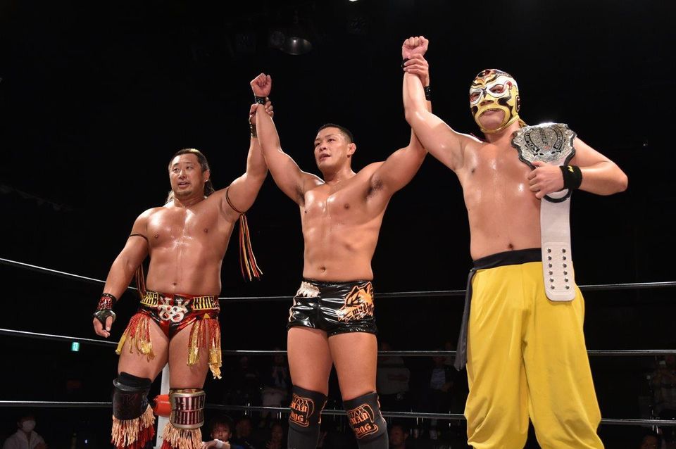 ○近藤修司&アンディ・ウー&稲葉大樹(17分58秒、片エビ固め)芦野祥太郎&児玉祐輔●&羆嵐