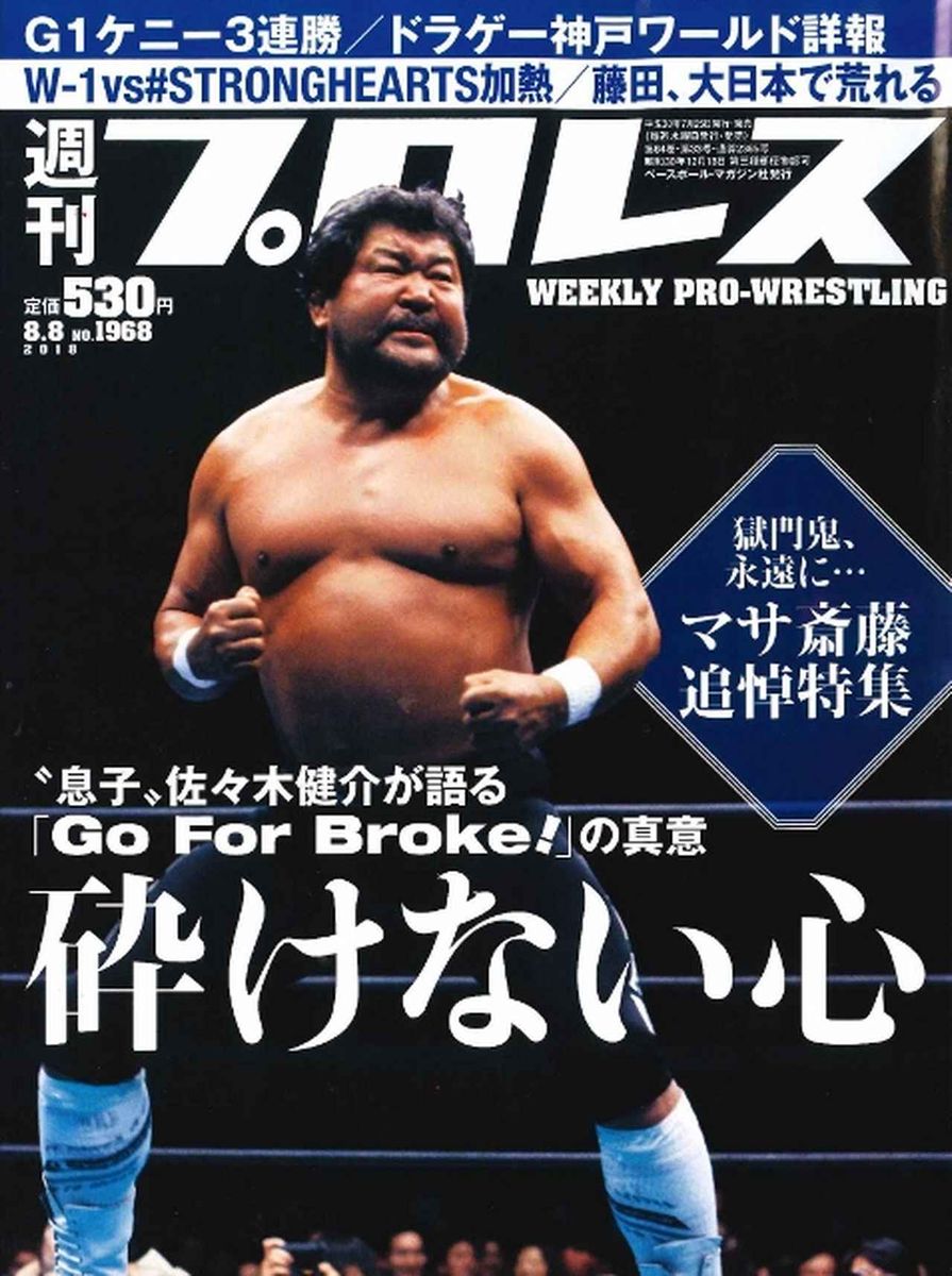 週プロ早版 8・8(№1968)獄門鬼、永遠に…マサ斎藤追悼特集/G1ケニー3連勝/ドラゲー神戸ワールド詳報/W-1vs#STRONGHEARTS加熱/藤田、大日本で荒れる 7月25日(水)発売 定価530円