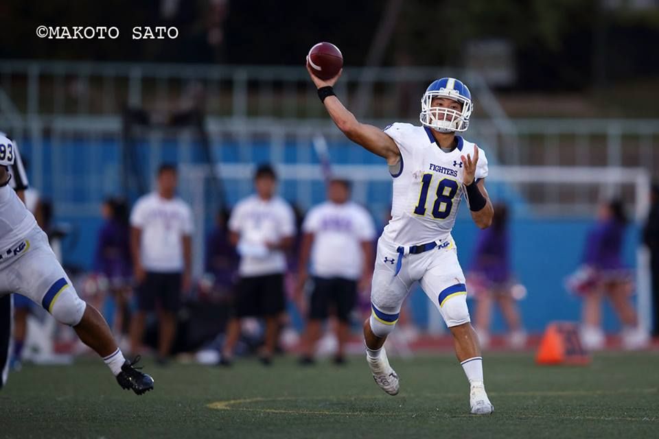 先発の関学QB西野は13回試投 8回成功 110ヤード獲得 1TD 被インターセプト0ー 場所: 王子スタジアム
