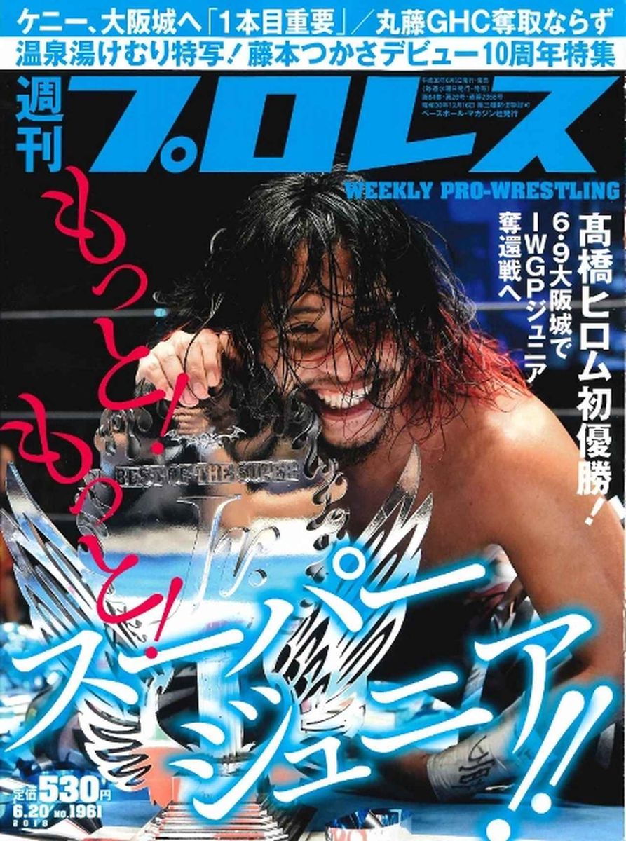 今週号の表紙は新日本プロレス「スーパージュニア」初優勝の髙橋ヒロムです。各地で熱戦続きだったジュニアの季節もいよいよフィナーレ。最終週は後楽園2連戦ほかを巻頭カラーから詳報。新日本関連では大阪城決戦直前、IWGPヘビー級王者のオカダ・カズチカに挑戦するケニー・オメガにインタビュー。時間無制限3本勝負の戦略など初のIWGPヘビー奪取への意気込みを聞いてます。