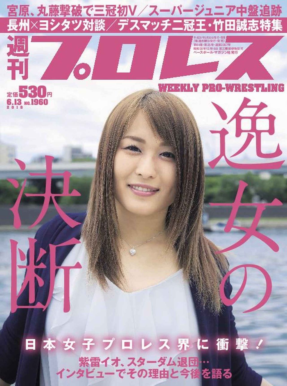 今週号の表紙はスターダム退団が明らかになった紫雷イオです。会見に先立ち本誌インタビューで退団の理由、今後について語ります。またスターダム5・23後楽園のリポートではイオが渡辺桃に敗れてワンダー・オブ・スターダム王座陥落の試合を中心にリポート。巻頭言ではロッシー小川社長にイオ退団後のスターダムの展望についても聞いています。