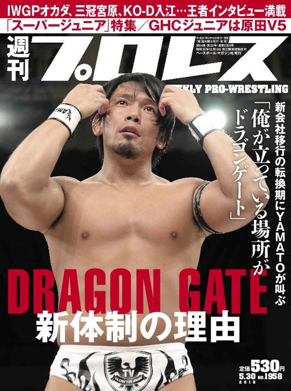 今週号の表紙は新体制となって注目が集まるドラゴンゲートの「キング・オブ・ゲート」開幕戦、5・8後楽園からYAMATOとなりました。YAMATOvsKzy、吉野vs鷹木など注目リーグ戦を巻頭カラーで詳報。5・13甲府の鷹木信悟凱旋興行も追跡。また巻頭言では新会社となるドラゴンゲートエンターテイメントの社長に就任した木戸亨氏、執行役員となった選手の中から代表して吉野正人にも話を聞いて、新体制として新会社を設立した真相に迫ります。