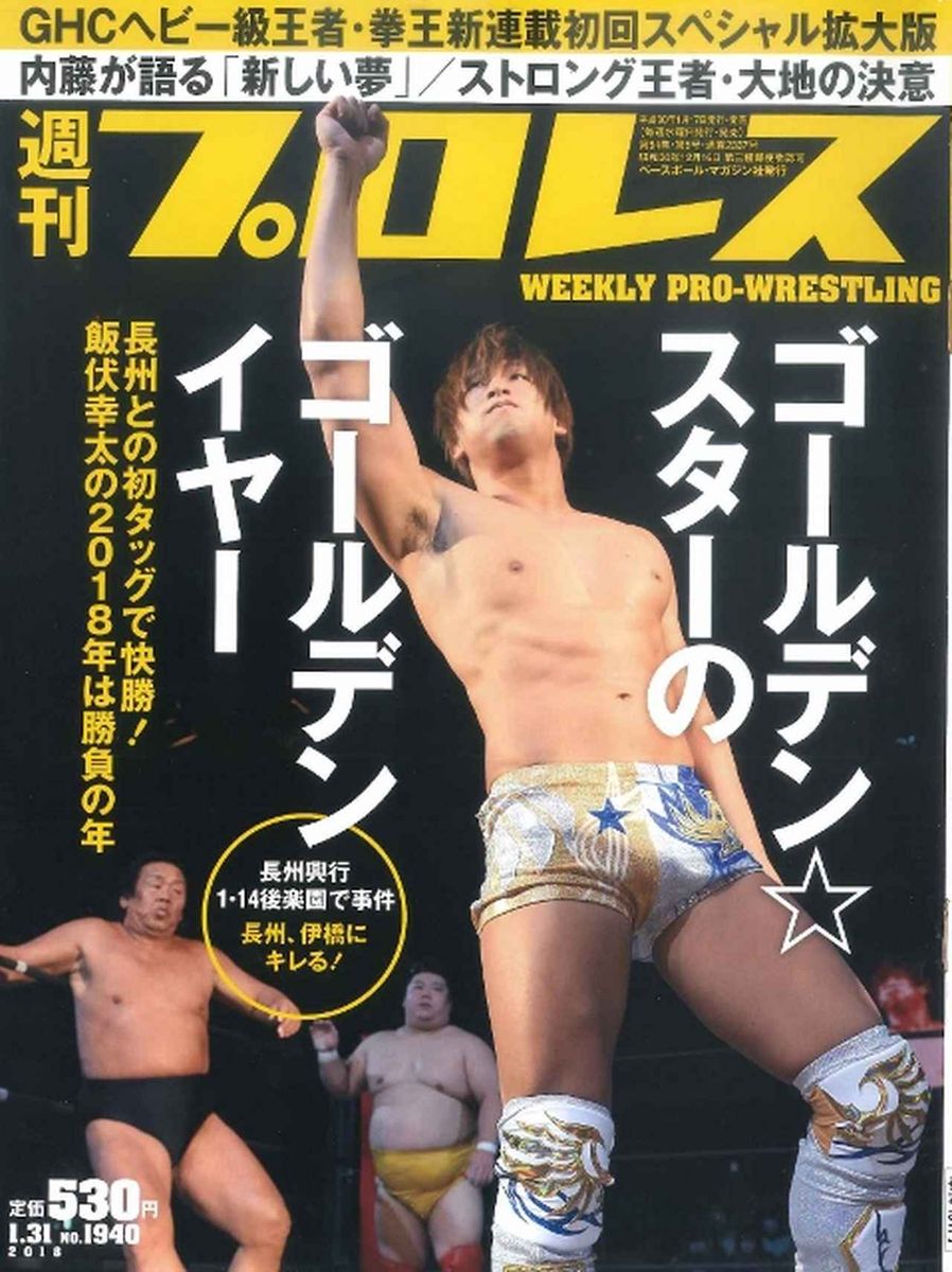 今週号の表紙は長州力プロデュース興行1・14後楽園大会で長州と初タッグを結成した飯伏幸太です。同大会メインはこの2人に伊橋剛太を加えた超異色トリオ。それがきっかけで事件発生。試合後のバックステージで長州が伊橋に対して怒り爆発。キレた長州のコメントなどを含め、同大会を詳報。