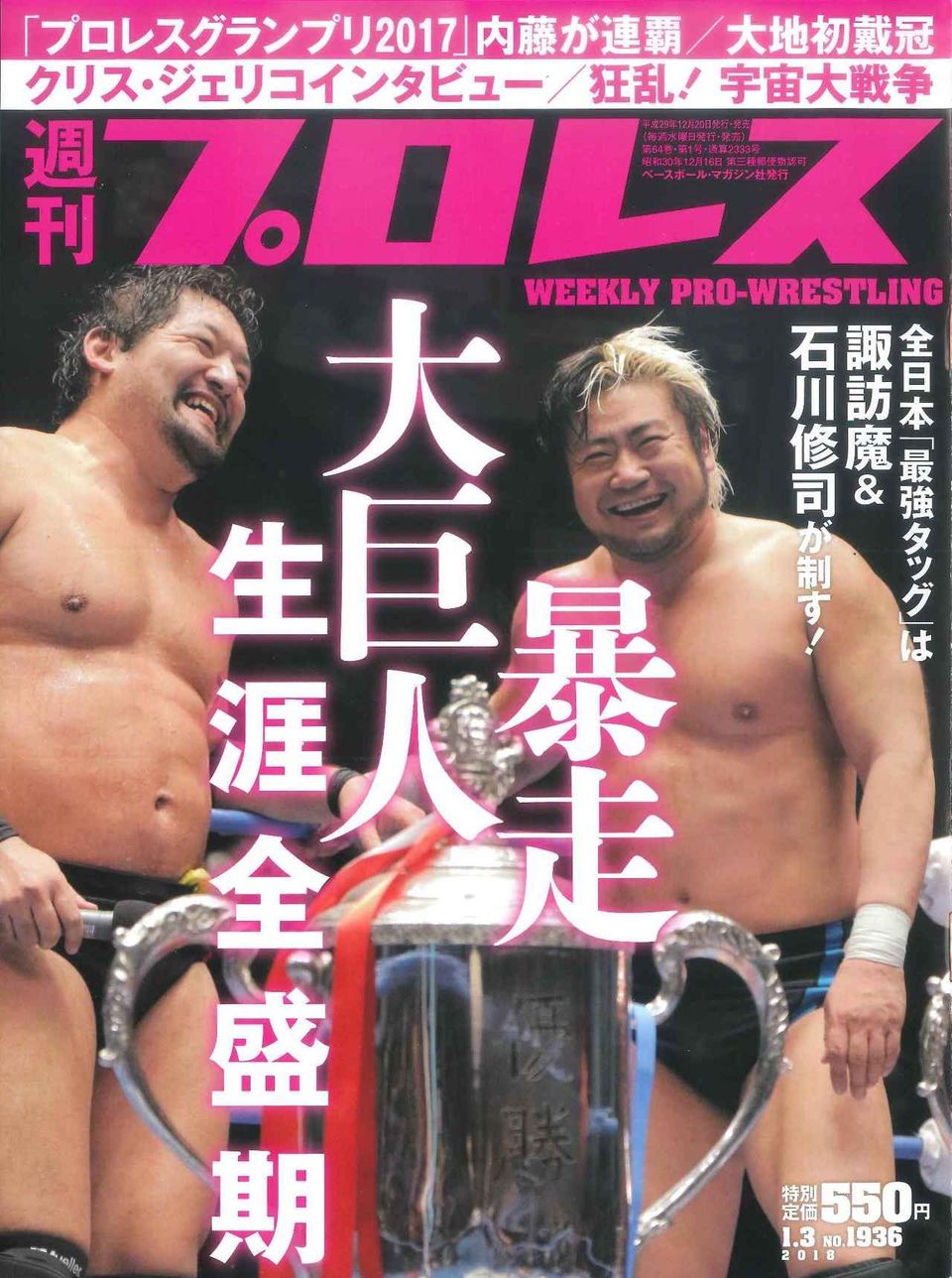 今週号の表紙は全日本「世界最強タッグ決定リーグ戦」を制した諏訪魔&石川修司となりました。最強タッグ最終戦12・12後楽園大会は優勝決定戦のほかにも最終公式リーグ戦をもれなくリポート。
