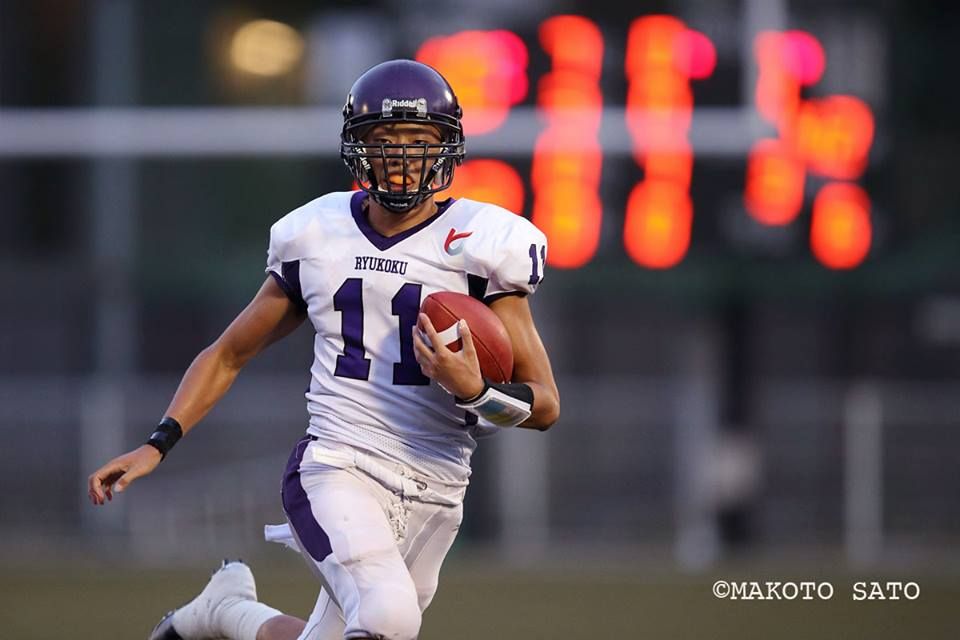 龍谷QB上田はランで計57ヤード1TD、パスで計84ヤード1TDでチームを逆転勝利に導いたー 場所: EXPO FLASH FIELD