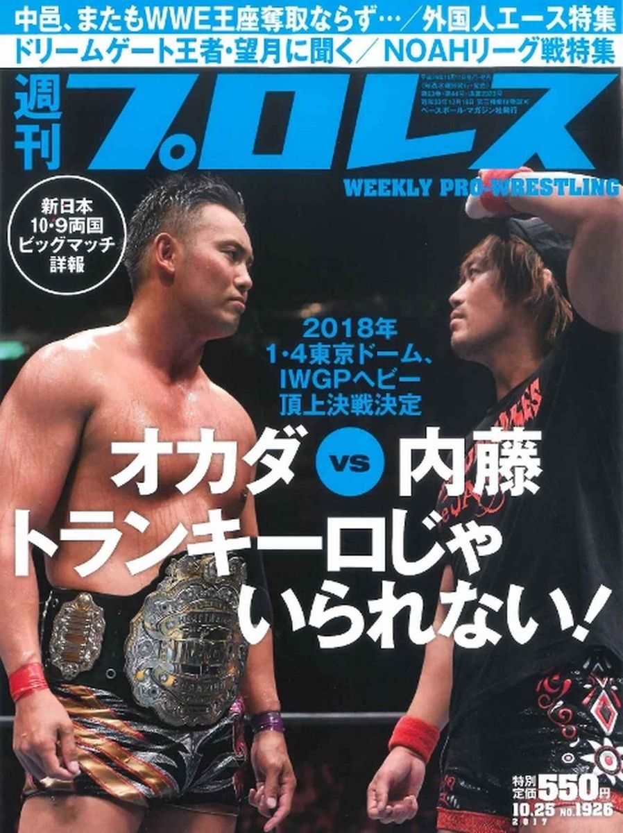 週プロ早版 10・25号(№1926) イッテンヨン頂上決戦はオカダvs内藤に決定! 新日本10・9両国詳報、中邑またもWWE王座戴冠ならず、外国人エース特集、NOAHリーグ戦特集 10月11日(水)発売 特別定価550円