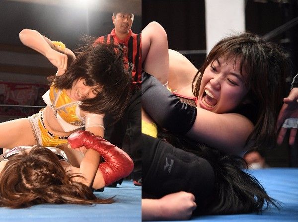 6・25横浜大さん橋ホール大会で一騎打ちをおこなったまる子(左)と華DATE。結果は華の勝利に終わった
