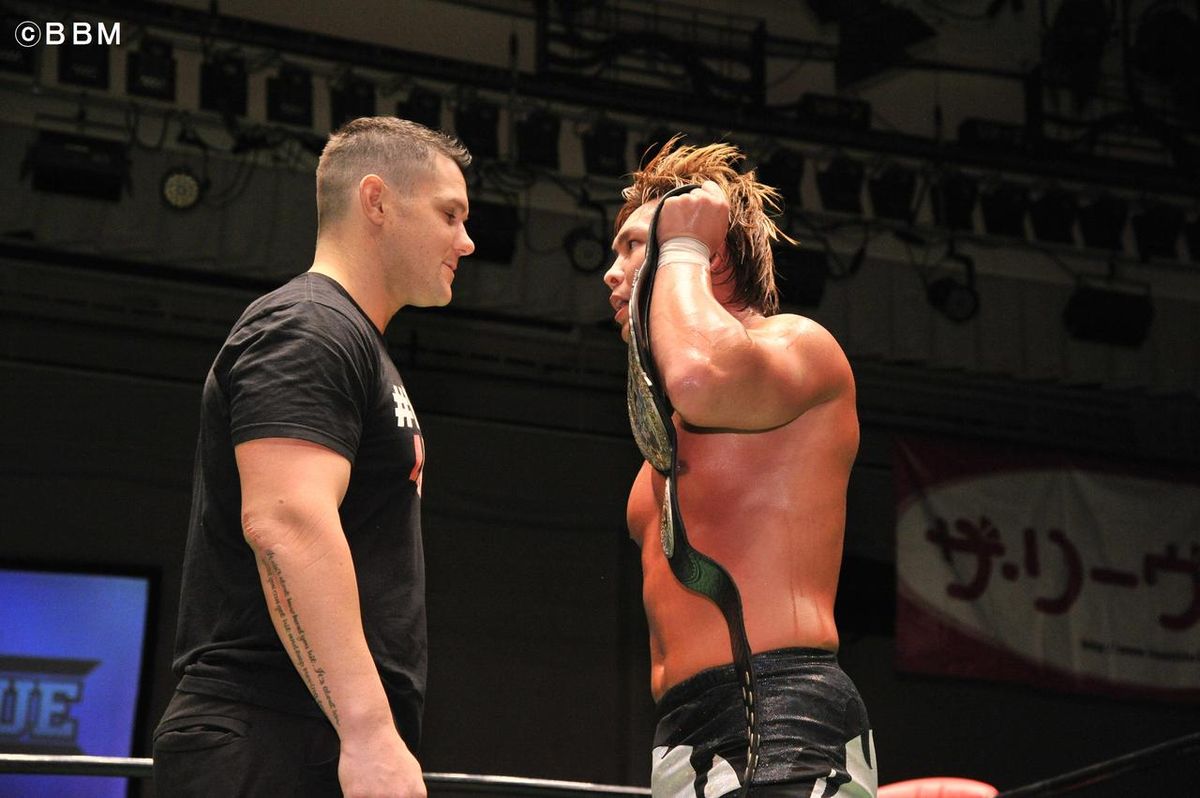 かつてNOAHに練習生として入門していたことがあるエドワーズ(左)。ついにNOAHの頂点であるGHCヘビーへの初挑戦が決定