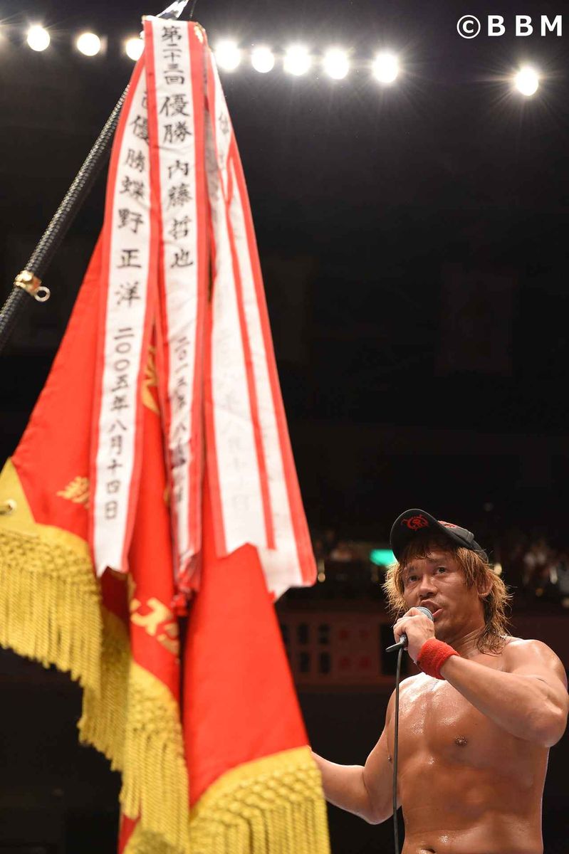 昨年の8・13両国大会でのG1公式戦(28分12秒、片翼の天使でオメガが勝利)以来1年ぶり2度目となる両者のシングルマッチは、“殺人技”が次々と飛び出す非情な闘いに。30分超の激闘を制したのは内藤。2013年以来4年ぶり2度目のG1制覇を成し遂げ、「ロス・インゴベルナブレ~ス、デ・ハ・ポン!」の決めゼリフで夏の大一番を締めくくった。