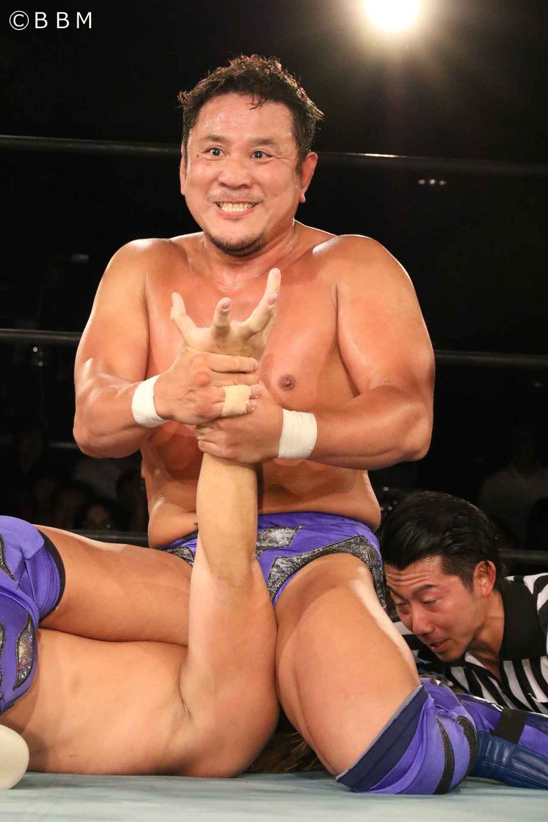 勝利した天山はパートナーのダイナソーとのタッグに手応え。「ダイナソー&猛牛、何か先に見えたらいいよな」