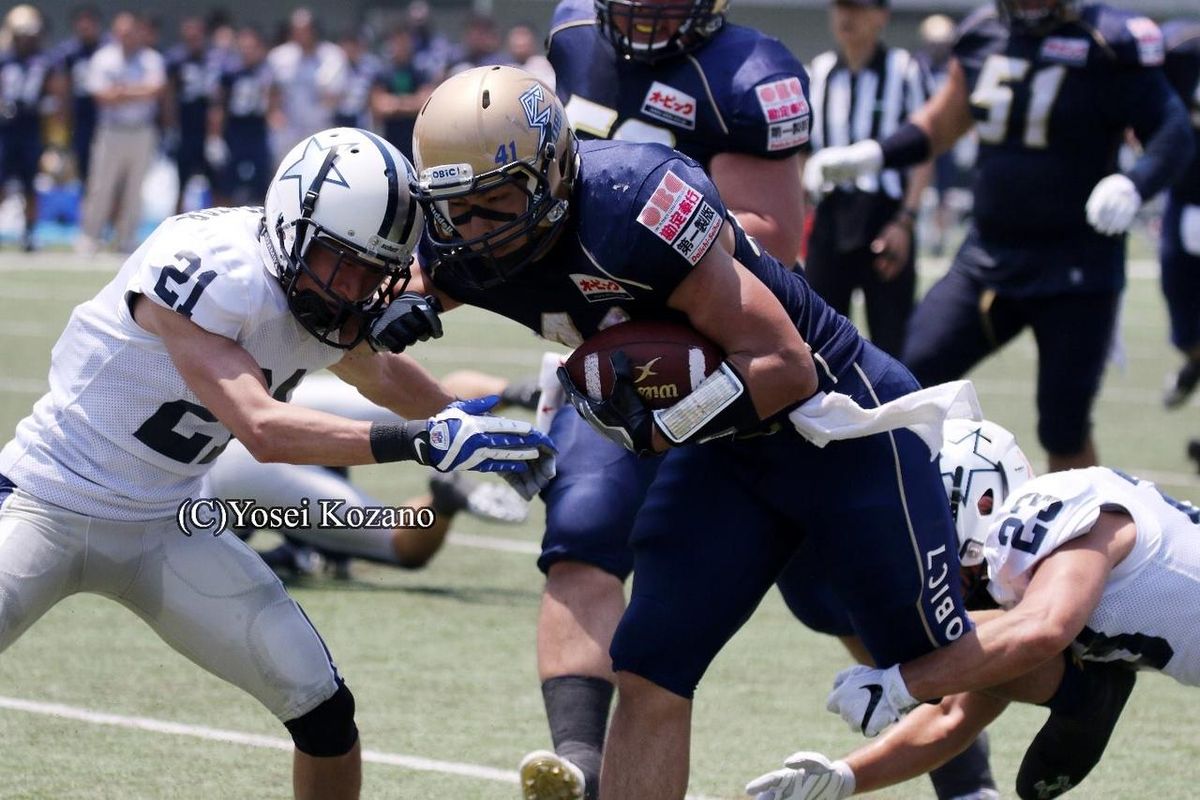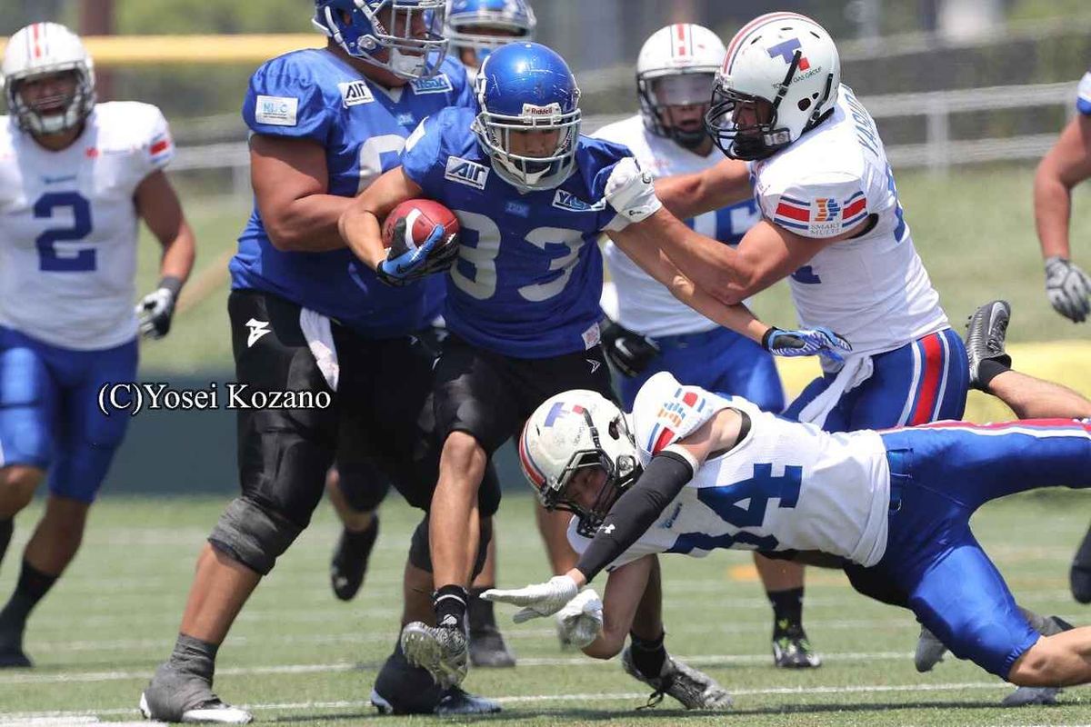 20日は、IBMが東京ガス相手に主導権を握り続け快勝。LIXILはオール三菱にファーストダウンの更新数で上回られたが、要所を締めるフットボールでタッチダウン(TD)を許さなかった。21日は、オービックがアサヒビールを序盤から攻守にわたって圧倒し、大量50点を奪って大勝。ノジマ相模原は、QBデビン・ガードナーがランとパス5TDを上げる活躍で、昨季のライスボウル王者・富士通に快勝した。